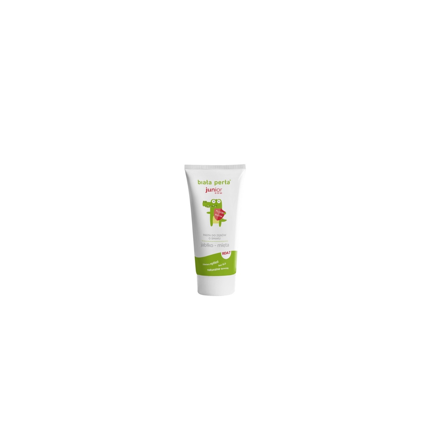 Biała Perła Junior to bezpieczna pasta do zębów dla dzieci w wieku 6–12 lat o smaku jabłko–mięta, która skutecznie oczyszcza, wzmacnia dziąsła i chroni przed próchnicą