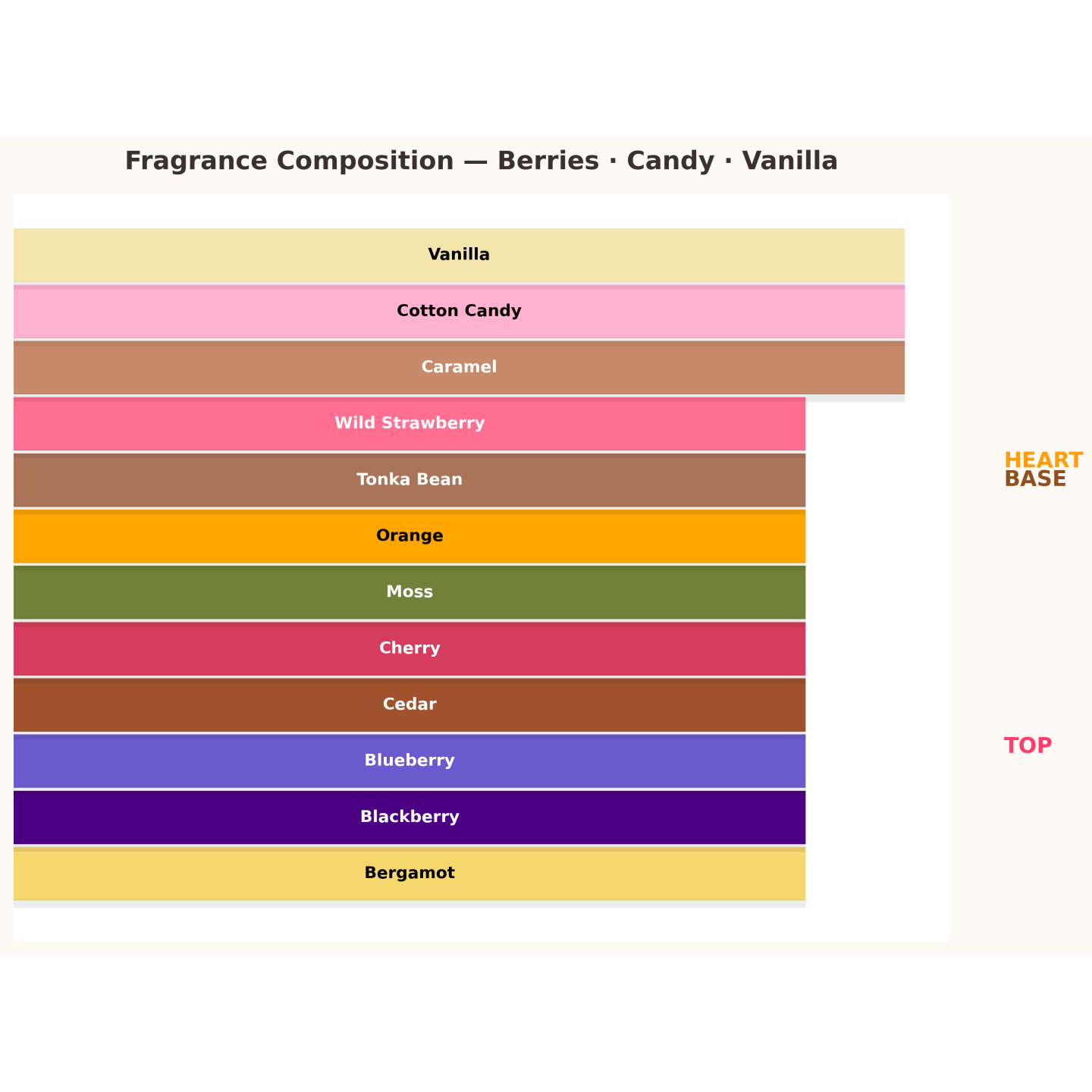 ✔ Base: caramel, vanilla, tonka bean, cedar, moss