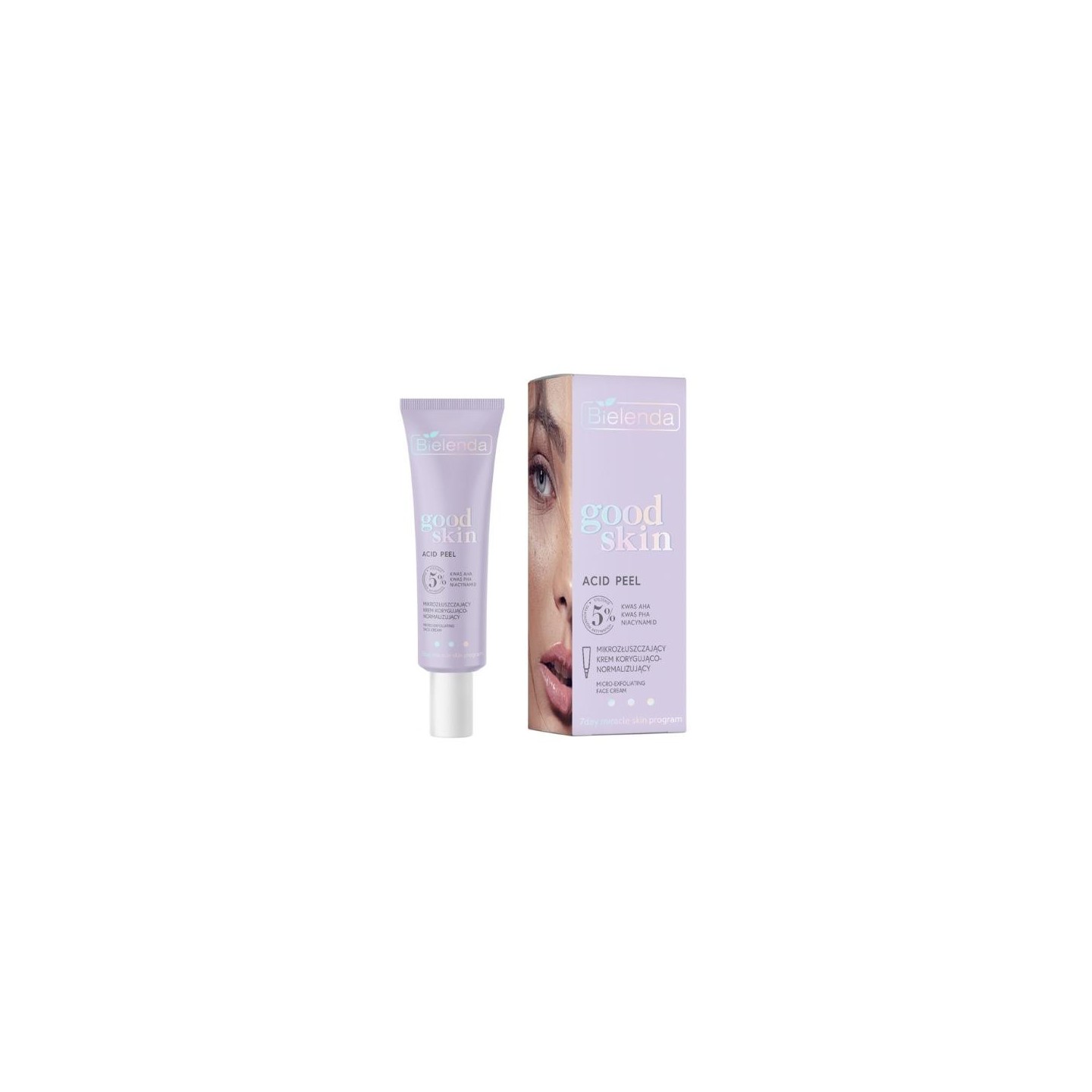 Do you struggle with oily, combination, blemish-prone skin? Reach for the micro-exfoliating, correcting and normalizing Bielenda Good Skin Acid Peel cream and your skin will thank you. The product supports the restoration of a better condition of the epidermis, supports the fight against imperfections, regulates excessive secretion of sebum. Its micro-exfoliating function refreshes and improves skin regeneration. With regular use of the cream, blackheads and enlarged pores may become less visible. The rich interior of our cream - see how good your skin can look!
