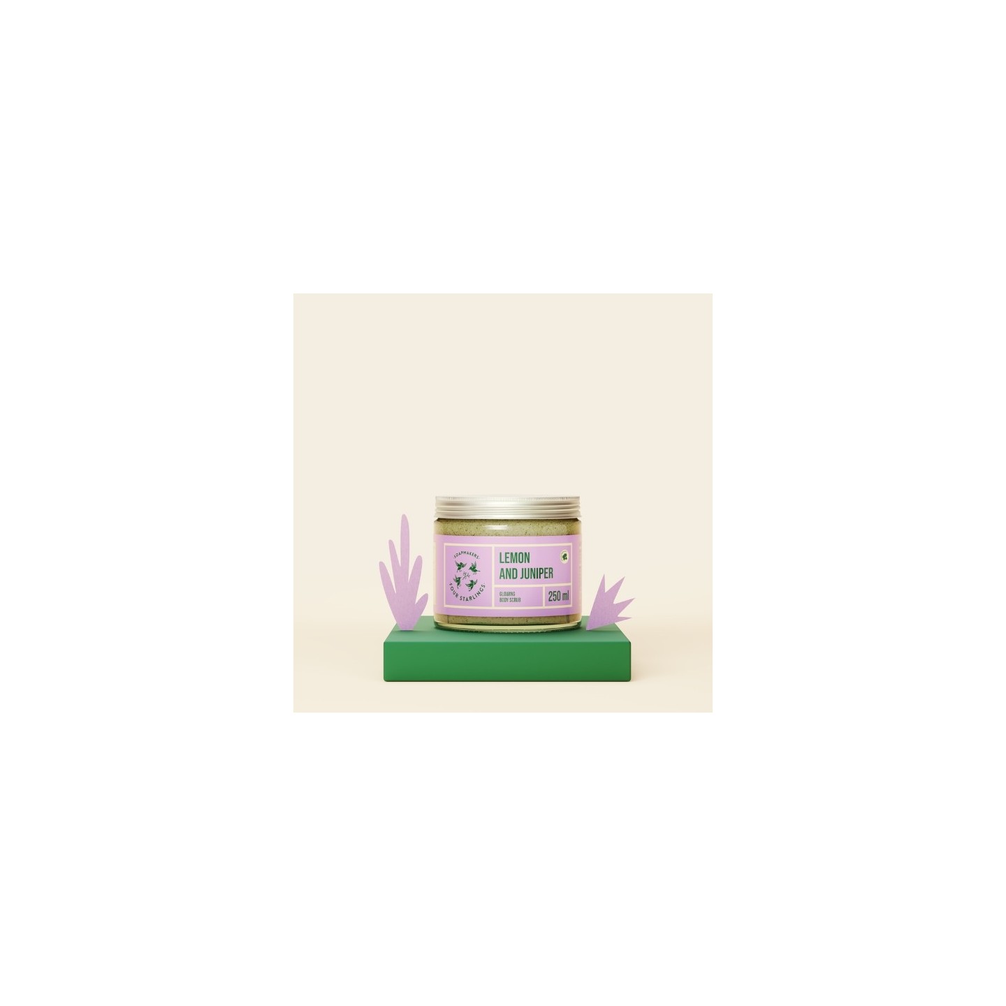 The brightening sugar scrub Lemon and Juniper is a real treat for the body and senses. It not only perfectly cleanses the skin, ale also effectively smoothes, nourishes and regenerates it. Additionally, it subtly brightens thanks to the presence of natural pigments that give the skin a healthy, radiant glow. This is an ideal product for those who want to combine effective care with a visual effect and a relaxing experience. The scrub contains sugar crystals, plum seeds and walnut shells, which are responsible for exfoliating dead skin and smoothing the skin. Regular use of this product improves microcirculation, supports skin regeneration and supports the fight against cellulite. The exfoliation effect is perfectly balanced by the nourishing base of the scrub, which contains shea butter, coconut oil, jojoba oil, candelilla wax and peach seed oil. These ingredients care for the skin, giving it softness, smoothness and a healthy look. Unlike other peels that leave a nourishing film on the skin, the Lemon and Juniper formula has a more cleansing effect, leaving the body with only a beautiful scent and subtle illumination. The aromatic blend of essential oils from juniper, green lemon, honey myrtle, coriander and lime adds energy and refreshment, making care exceptionally pleasant. The biggest attraction of the peel is its illuminating effect. Delicate pigments of natural origin reflect light, creating a subtle shine that emphasizes the beauty of the arms, neckline or legs. This is a cosmetic that will work perfectly before an important event, a holiday evening or simply when you want to feel special and take care of yourself in the most beautiful way. Vegan cosmetic - a product created without the use of animal-derived raw materials.
