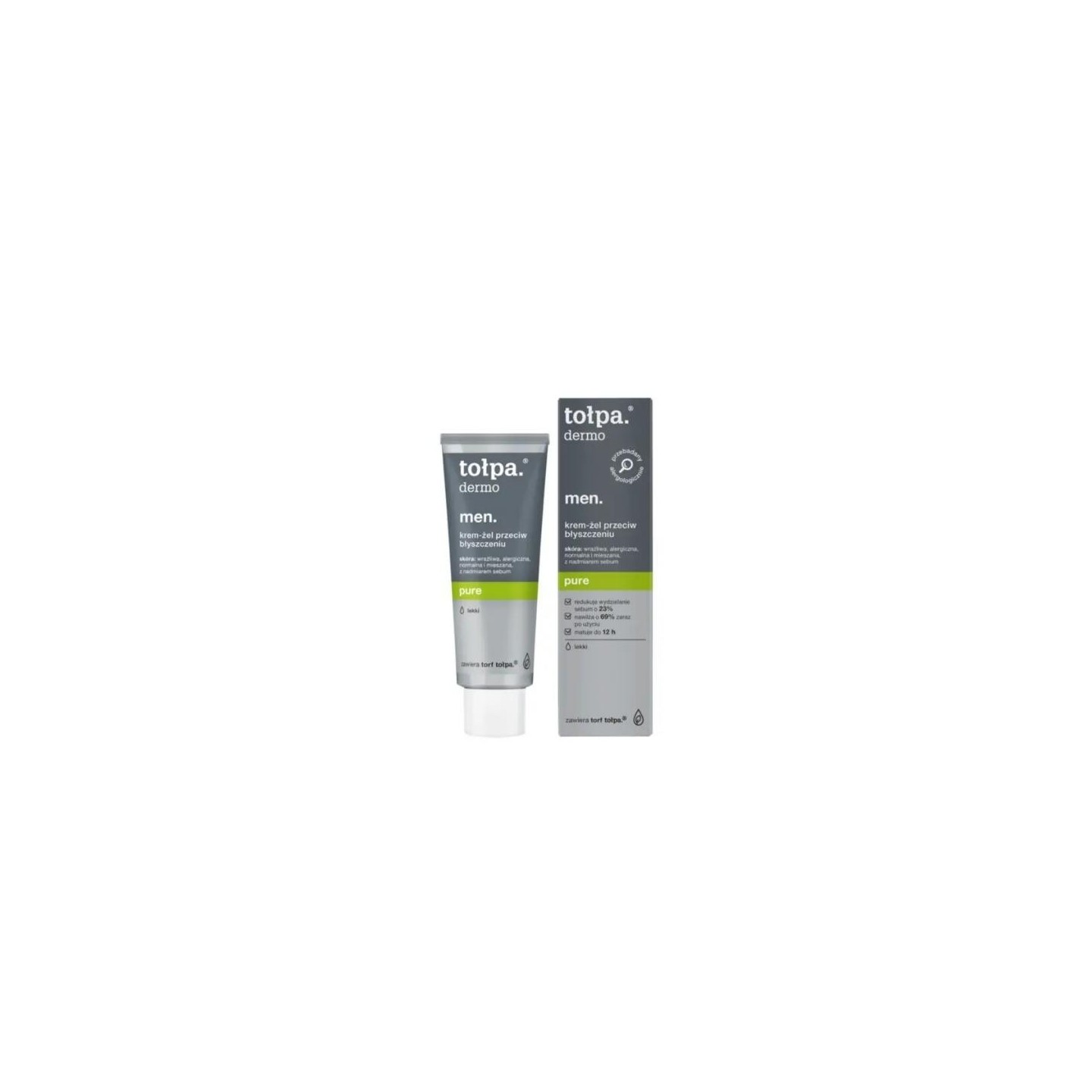 medium ;font- family :'Times New Roman', serif;"> Tołpa Dermo Men . Anti-shine face cream-gel mattifies and moisturizes the skin, regulates sebum secretion. Prevents skin from shining and imperfections. reduces their amount.It has a light formula and is quickly absorbed, does not burden the skin.Restores a matte and fresh appearance