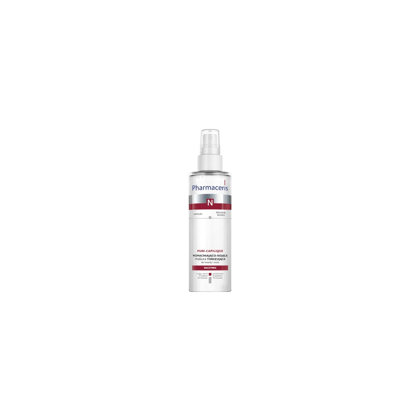 Toning Mist is a light, soothing spray tonic designed for daily care of vascular, sensitive and over-reactive skin, prone to redness, erythema and broken capillaries. The product restores the skin's proper pH, and its convenient form of mist makes the tonic also si as a refreshing product during the day. The formula has been enriched with acerola extract - a strong antioxidant that strengthens blood vessels, and D-panthenol and Phyto-Hydrator, which moisturize, soothe irritations and reduce the visibility of redness. The mist reduces skin over-reactivity and provides a feeling of comfort and relief.