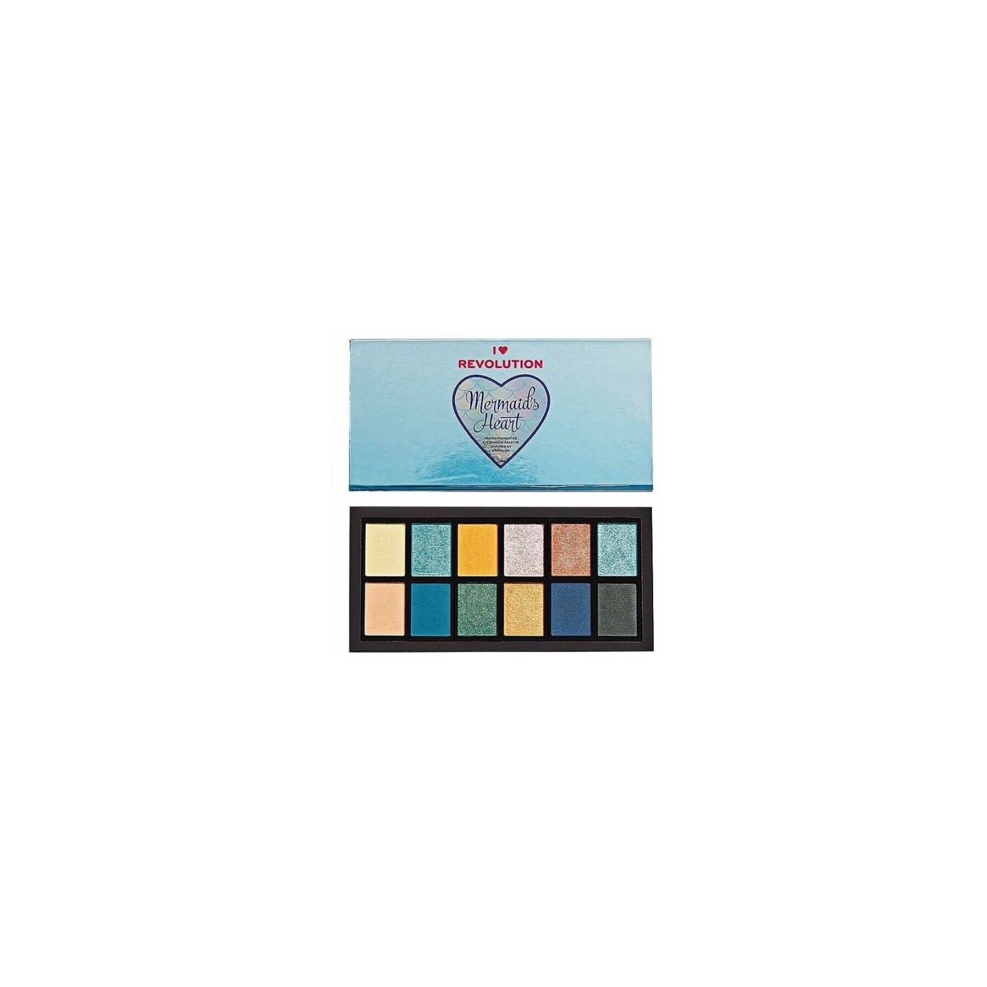 • Makeup Revolution I Heart Revolution Palette of 12 eye shadows Mermaids Heart 12 x 0.75 g