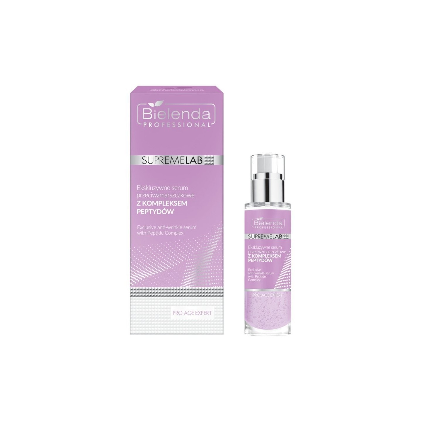 The exclusive Bielenda Professional SupremeLAB Pro Age Expert anti-wrinkle face serum is a product intended for the daily care of mature skin with visible wrinkles, showing signs of lack of nutrition, with a nutritional deficit, dehydrated and requiring revitalization and overall improvement of appearance. The serum is a highly concentrated, anti-wrinkle cosmetic containing the optimal, effective concentration of as many as three types of advanced peptides that have a strong anti-wrinkle and smoothing effect, reduce signs of aging, improve firmness, elasticity and the level of skin nutrition. The serum has also been enriched with hyaluronic acid, which perfectly moisturizes, has antioxidant and rejuvenating properties.