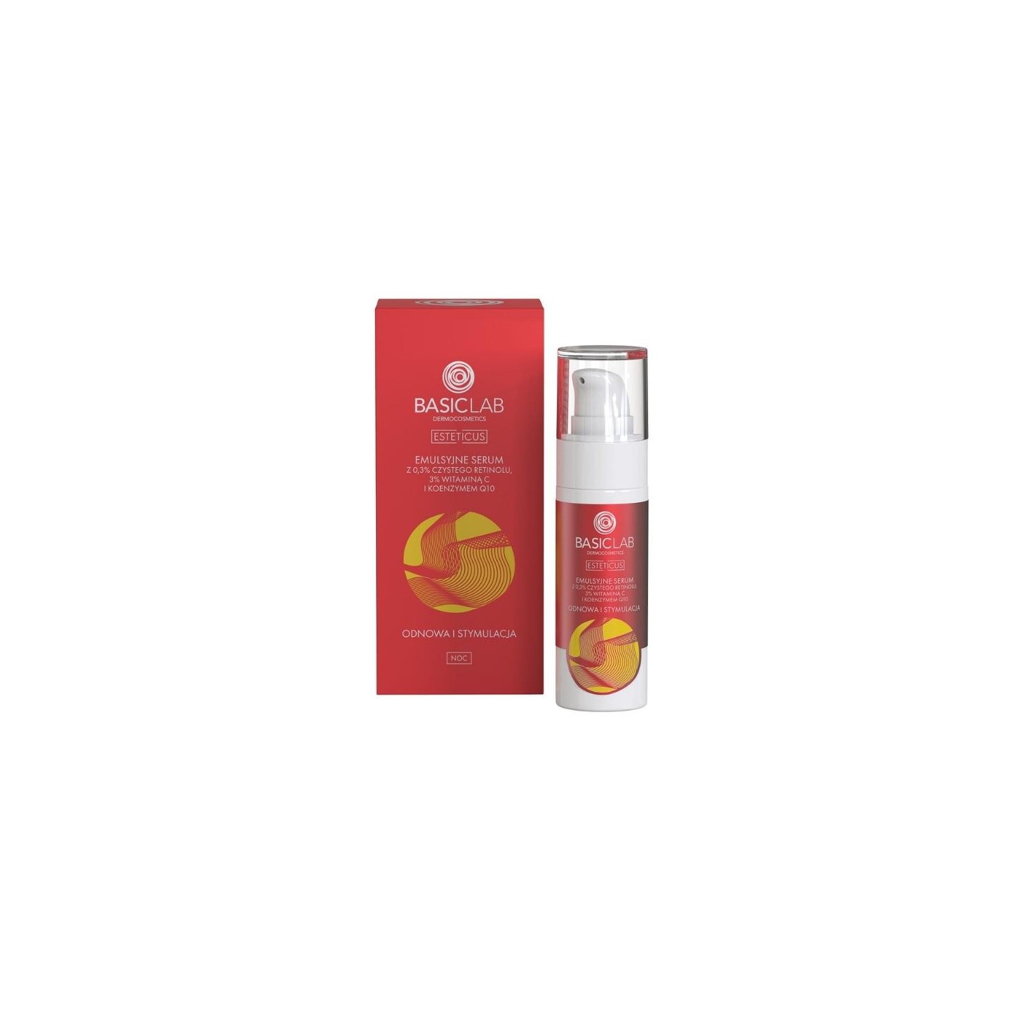 Specialty serum night in the form of a light emulsion with pure retinol 0.3% , ascorbyl tetraisopalmitate and coenzyme Q10 , it has an effective anti-wrinkle and corrective effect. By stimulating the skin to renew, it visibly improves its structure and firmness, smoothes it and reduces the visibility of pores and wrinkles. At the same time, the optimal combination of soothing and moisturizing ingredients reduces the effects of building skin tolerance to retinol , accelerating its regeneration, strengthening the hydrolipid barrier, effectively protecting it against moisture loss and reducing redness and flaking.