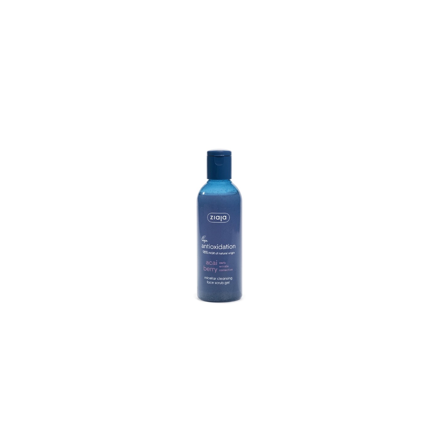 Acai micellar gel with peeling gently cleanses and smoothes the skin, supporting hydration and prevention of first wrinkles without microplastics