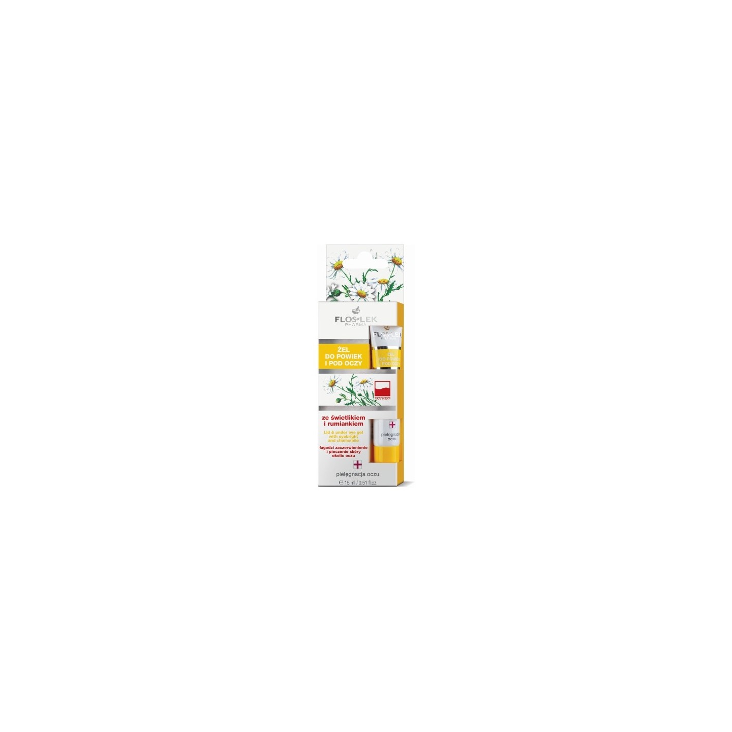 Gel with eyebright and chamomile is intended for the care of the skin around the eyes, which is prone to redness, irritation and burning. It soothes the symptoms of tired eyes and brings relief to irritated, red and burning skin. The product removes the feeling of the so-called "heavy eyelids" and eliminates the tension and roughness of the epidermis in people who regularly use eye makeup. Additionally, it has a positive effect on the skin's protective barrier, reduces bags under the eyes and evens out the skin tone. The gel is safe to use when wearing contact lenses, permanent makeup and after eyelash styling treatments. Its properties are: