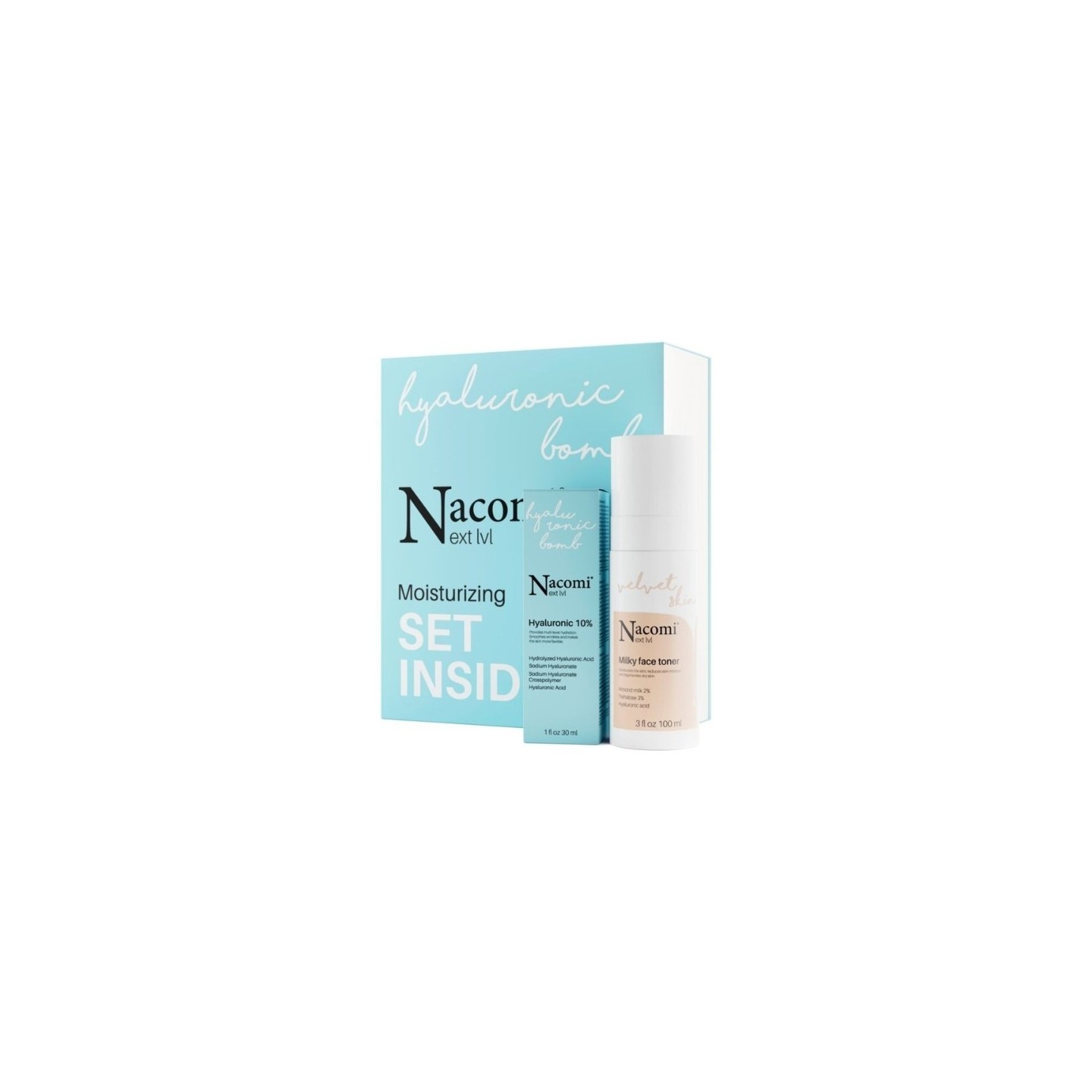 Nacomi Next Level Gift Set Moisturizing Milk Toner 100 ml + Hyaluronic Acid Serum 10% 30 ml