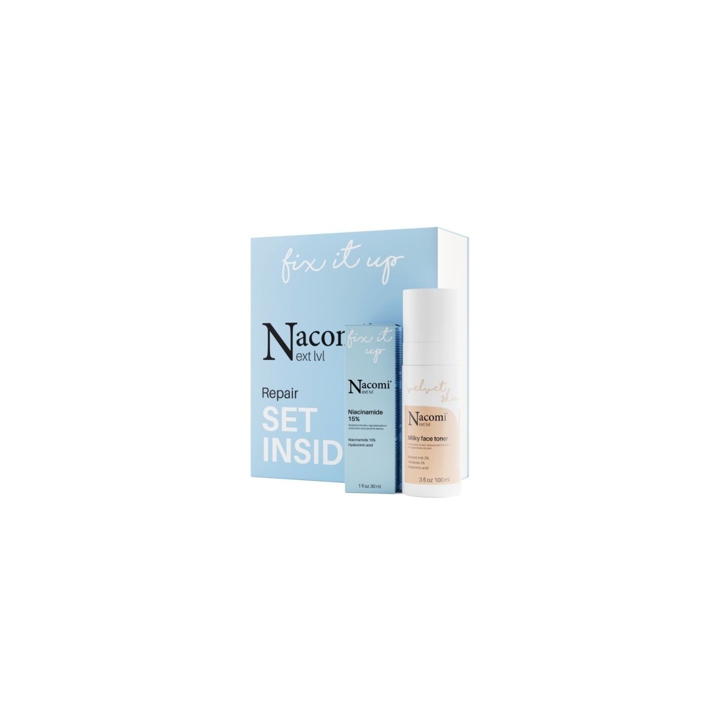 Nacomi Next Level Gift Set Repair Moisturizing Milk Toner 100 ml + Niacinamide Serum 15% 30 ml