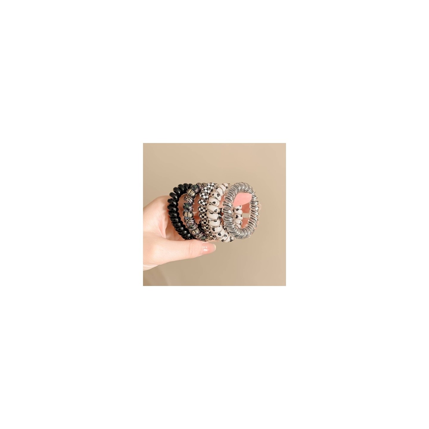 A set of five stylish hair bands in classic black and white. Made of high-quality materials, the bands are gentle on the hair, do not break it and hold the hairstyle well all day long. Perfect for everyday use and special occasions, they match any style.
