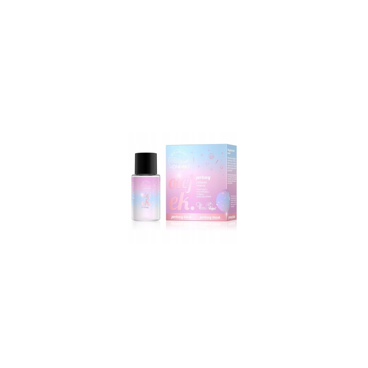 Hair in Balance by OnlyBio's nourishing and illuminating pearl oil is designed for dull, tired, and lackluster hair. Its pearlescent particles impart a luminous, opalescent shine and a glow effect that adds a truly striking look to your hairstyle. The formula protects hair from high temperatures, while also smoothing, softness, and a sleek structure.