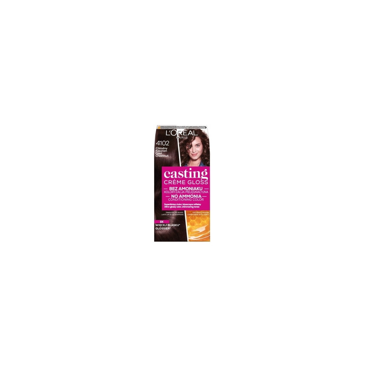 Loreal Casting Creme Gloss hair dye is an innovative and delicate ammonia-free formula that provides beautiful colored hair and a wealth of natural reflections. Thanks to the soft tube applicator, coloring becomes simple and precise, even for beginners. The nourishing formula with Royal Milk strengthens the hair fibers both inside and on the surface, making them soft and exceptionally shiny. The hair is nourished, soft to the touch and beautifully fragrant. The lasting color effect lasts for many hair washes, and coloring is pure pleasure thanks to the delicate scent and convenient applicator.
