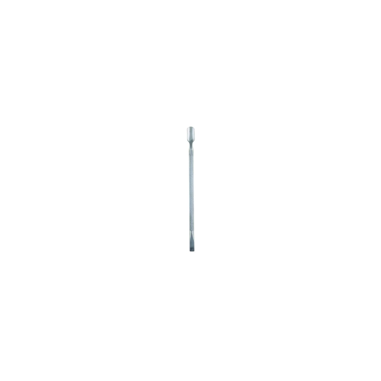 A metal cuticle pusher is an essential tool during mani- and pedicure treatments, which enables precise and non-invasive removal of cuticles. This solidly made pusher has two tips, which makes it versatile and useful in various care situations. It is made of high-quality metal, which guarantees its durability, and the grooved, non-slip handle ensures a firm grip during use.
