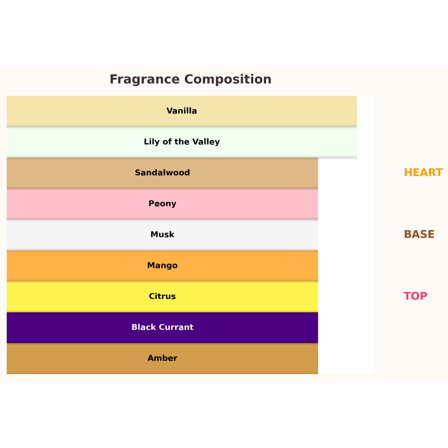 ✔ Heart notes: lily of the valley, sandalwood, peony