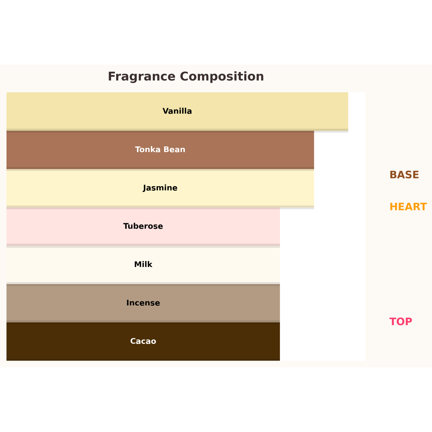 Unisex Eau de Parfum with milky elegance. It si with deep cocoa and delicate incense, followed by a bouquet of jasmine and creamy tuberose. A base of vanilla, tonka bean, and warm milk creates a calm, soothing aura—perfect for everyday wear and cooler evenings.