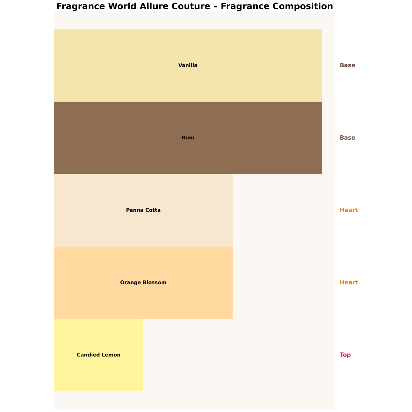 Allure Couture is a fragrance that celebrates feminine elegance in its most velvety and exquisite form. This composition is for those who love enveloping, creamy, yet luminous perfumes. This fragrance builds an aura of subtle luxury around its wearer – refined, gourmand, and exceptionally sensual. The opening captivates with sparkling candied lemon, which permeates the composition with juicy freshness and delicate sweetness, creating an energetic, inviting beginning. At the heart of the fragrance si an elegant blend of orange blossom and creamy panna cotta – a duo that brings floral luminosity and a gourmand velvetiness to the composition. The base is based on warm vanilla and a dry rum accord, providing depth, sensuality, and a beautiful, long-lasting finish. The fragrance is perfect for both day and evening – elegant, sophisticated, ale not overdone. Its unisex nature allows it to be worn by anyone who loves sweet, creamy, luxurious compositions.