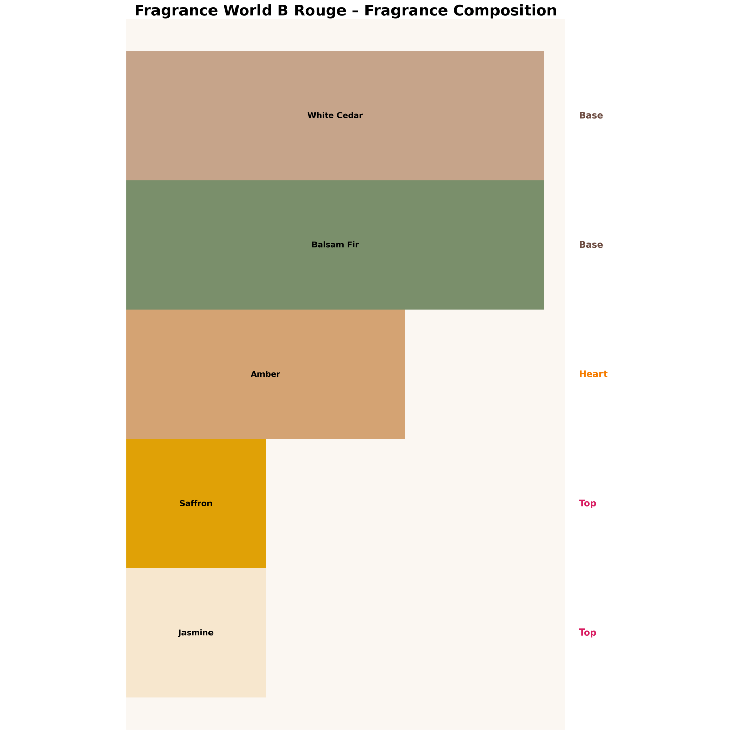B-Rouge is a fragrance created for those who desire a memorable experience. It's not just a perfume—it's emotion, luxury, and mystery wrapped in an elegant composition. Each layer creates a hypnotic image that accompanies you throughout the day, like a sensual signature. The opening captivates with a regal duo: saffron brings richness, spicy intensity, and oriental depth, while jasmine adds silky elegance and a luminous, floral glow. A modern harmonia si at the heart of the fragrance: amberwood and amber intertwine in a soft, warm, mineral aura that envelops like a luxurious veil. The base is a deep, woody-resinous structure: cedar, fir resin, and warm resin notes create a long-lasting, sensual finish that lingers on the skin for hours, asserting your presence in a subtle, elegant style. B-Rouge is a fragrance for those who want to exude strength, luxury, and mystery without words.