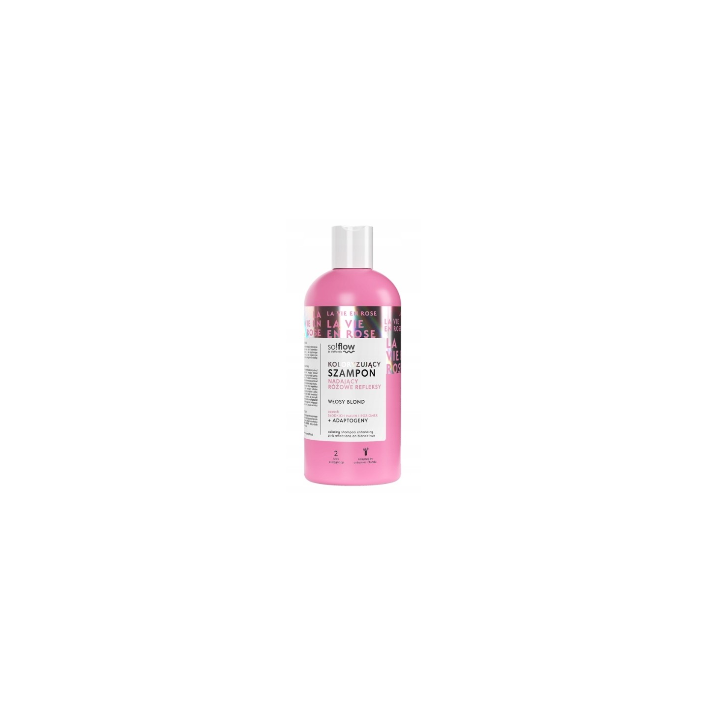 so!flow Color Shampoo for blond Hair with Pink Reflex Effect. Cleanses, moisturizes and adds shine thanks to keratin and baobab oil.
