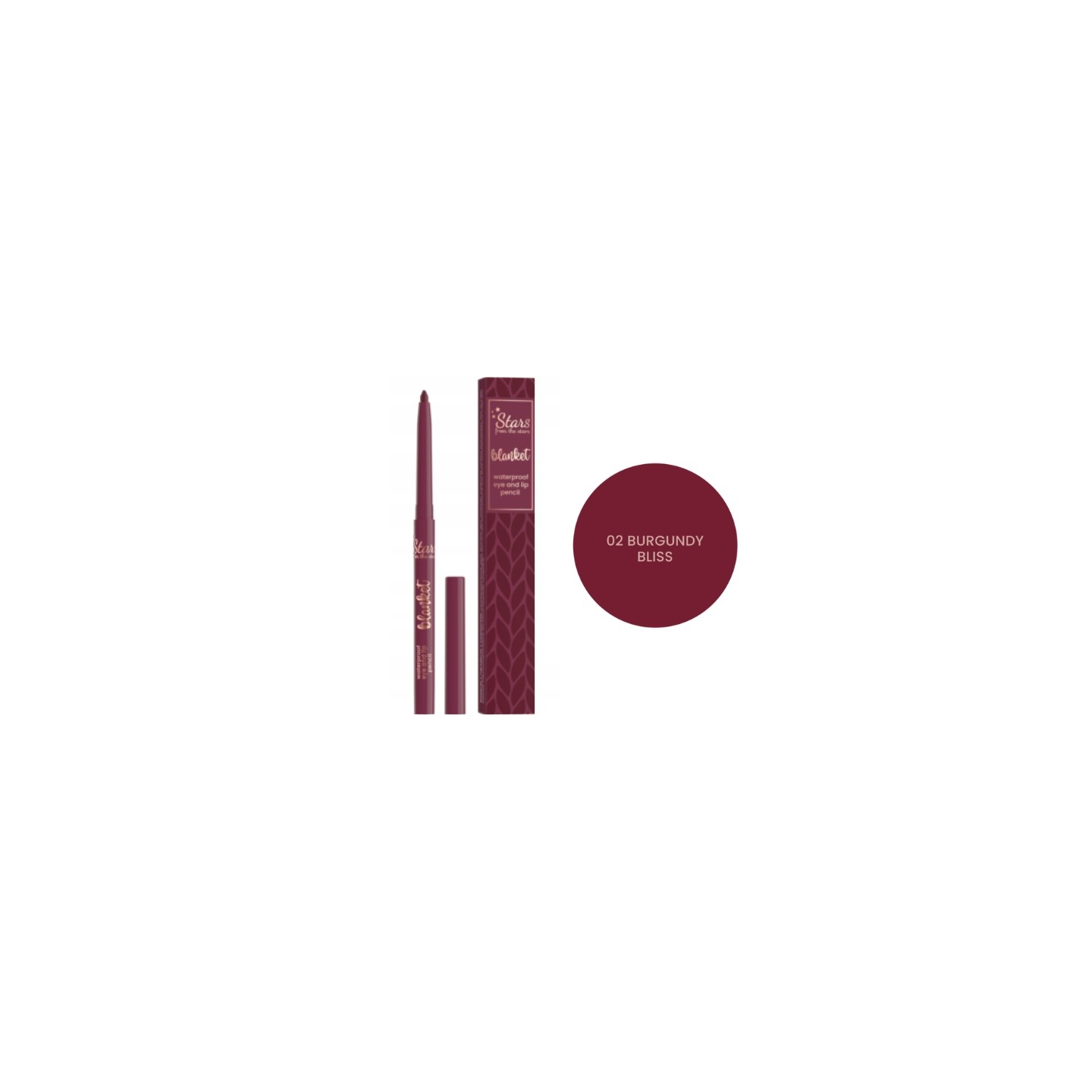 A long-lasting 2-in-1 pencil in a captivating burgundy shade that can be used for both eye makeup (on the lash line or waterline) and lips (as a lip liner or matte lipstick); the waterproof, setting formula si smoothly, is extremely long-lasting and lasts for many hours, and the burgundy color particularly highlights green and hazel irises, while also fitting into the autumnal atmosphere of the Blanket collection.