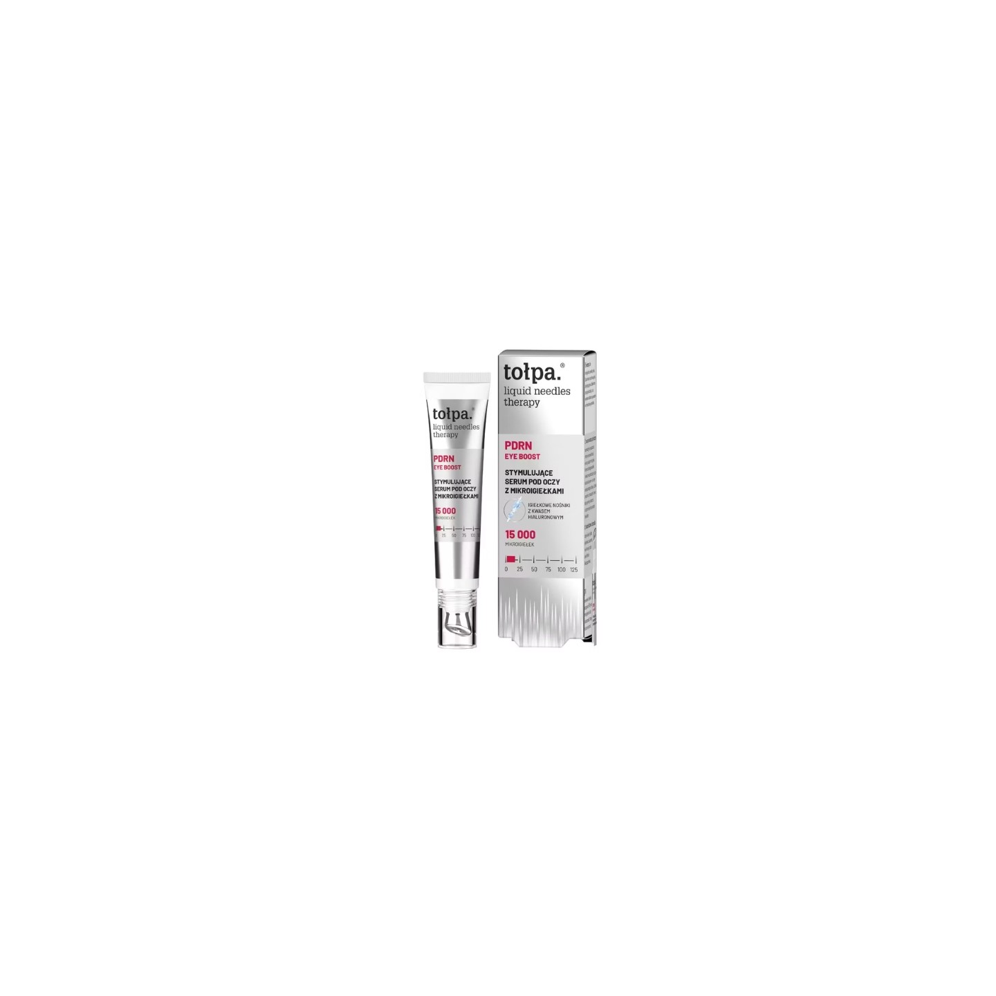 A breakthrough eye serum that combines biotechnological solutions with natural active ingredients. Using microneedles derived from the freshwater sponge Spongilla fragilis, the serum precisely delivers active ingredients deep into the skin, enhancing their effectiveness and accelerating visible skincare results. The microneedles gently "loosen" the epidermis, creating microchannels that facilitate the penetration of ingredients such as PDRN, five forms of hyaluronic acid, and Tołpa® peat. As a result, wrinkles si shallower, dark circles become lighter, and the skin around the eyes regains its elasticity and a rested appearance. The light, velvety formula absorbs quickly, leaving no wet or greasy film, and is comfortable even for sensitive skin. A natural, gentle tingling is a sign of the technology's active action.