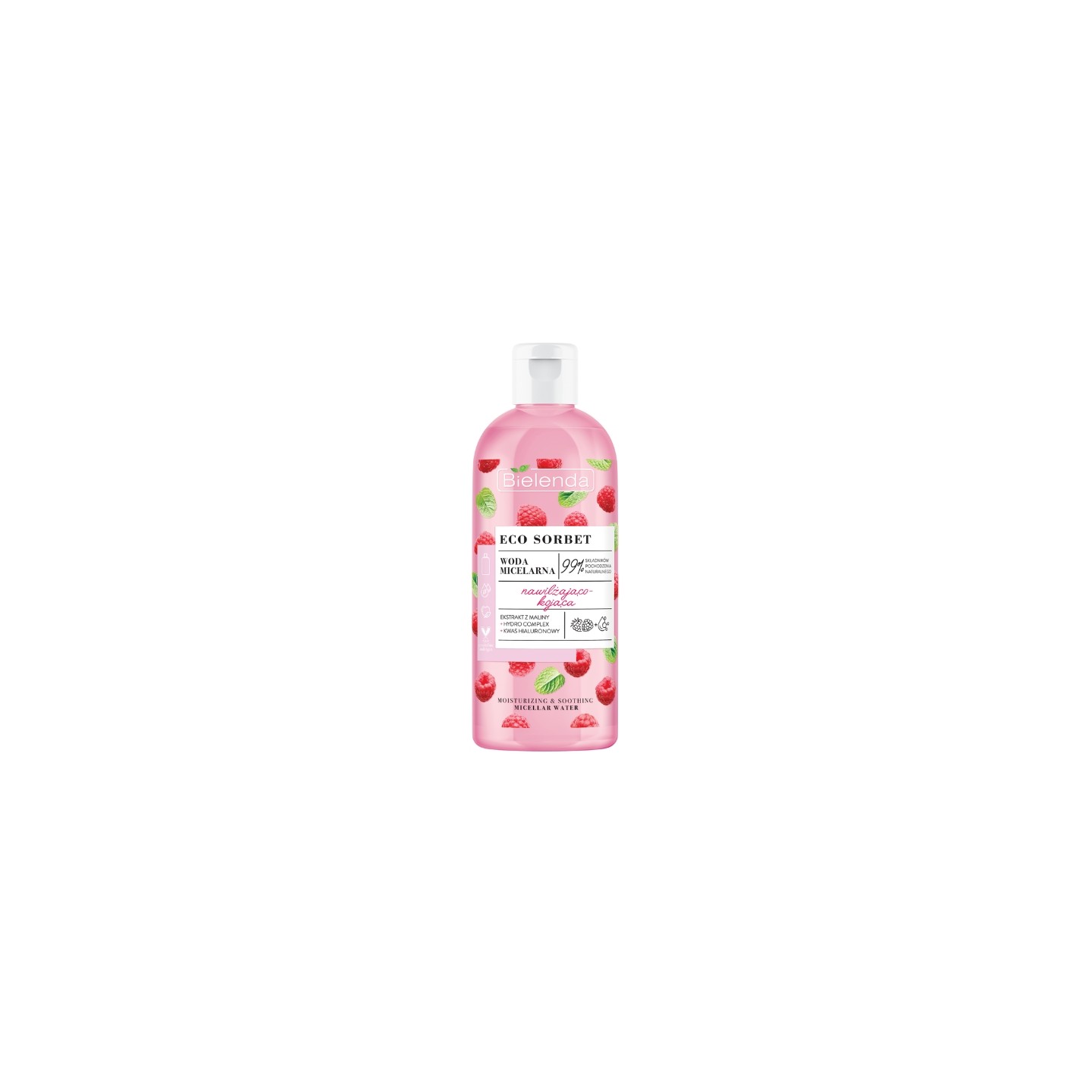 Bielenda's moisturizing and soothing micellar water from the Eco Sorbet line with a raspberry scent is a gentle product designed for daily facial cleansing. It effectively removes makeup, impurities, and excess sebum, while nourishing the skin and restoring its freshness. Thanks to its light formula based on moisturizing and soothing ingredients, the product doesn't cause a feeling of tightness, leaving skin soft, smooth, and comfortably moisturized after use. Fruity ingredients inspired by nature support skin regeneration and help maintain a healthy, radiant appearance. This cosmetic is ideal si daily care of all skin types, especially dry and sensitive skin.