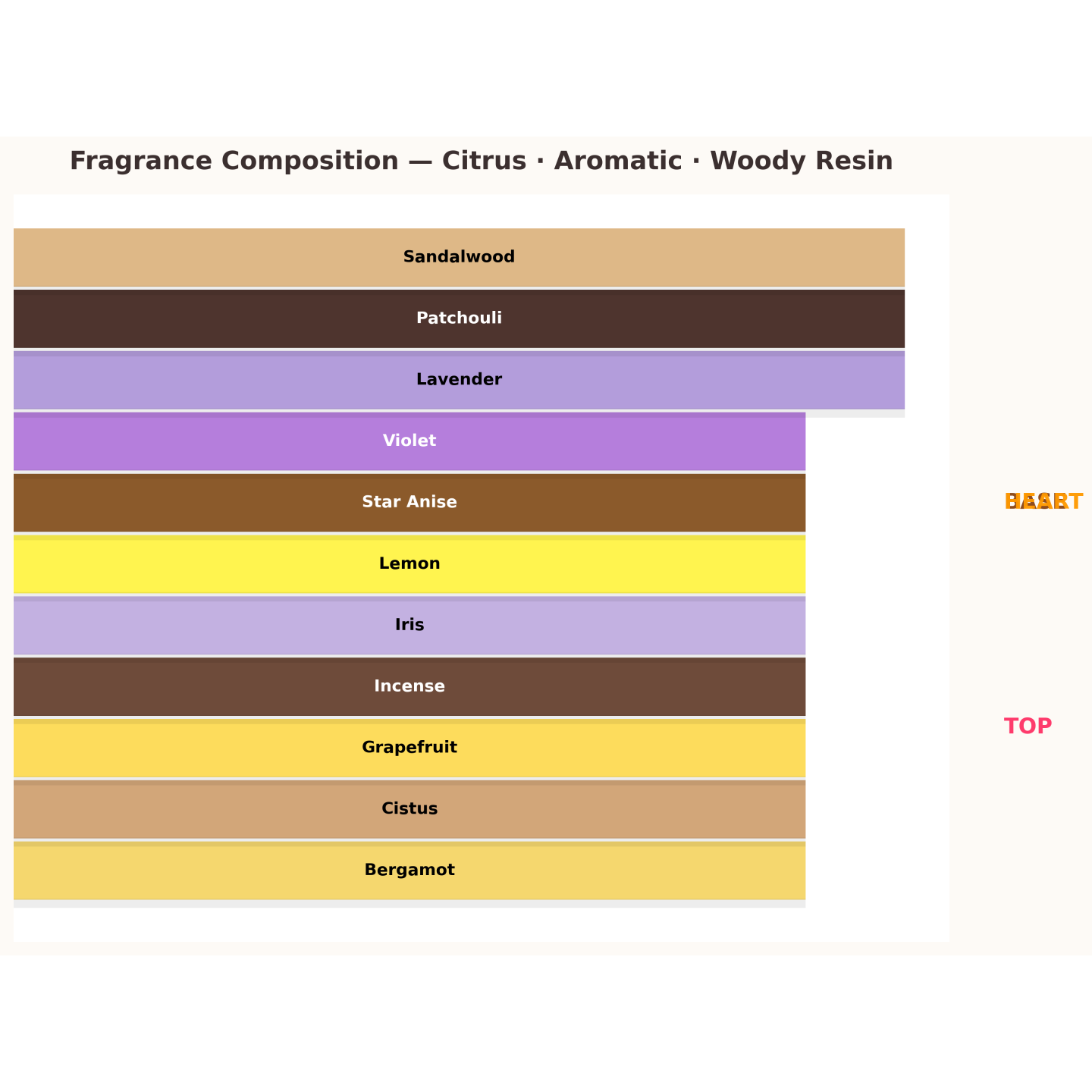✔ Base: patchouli, sandalwood, rockrose, iris