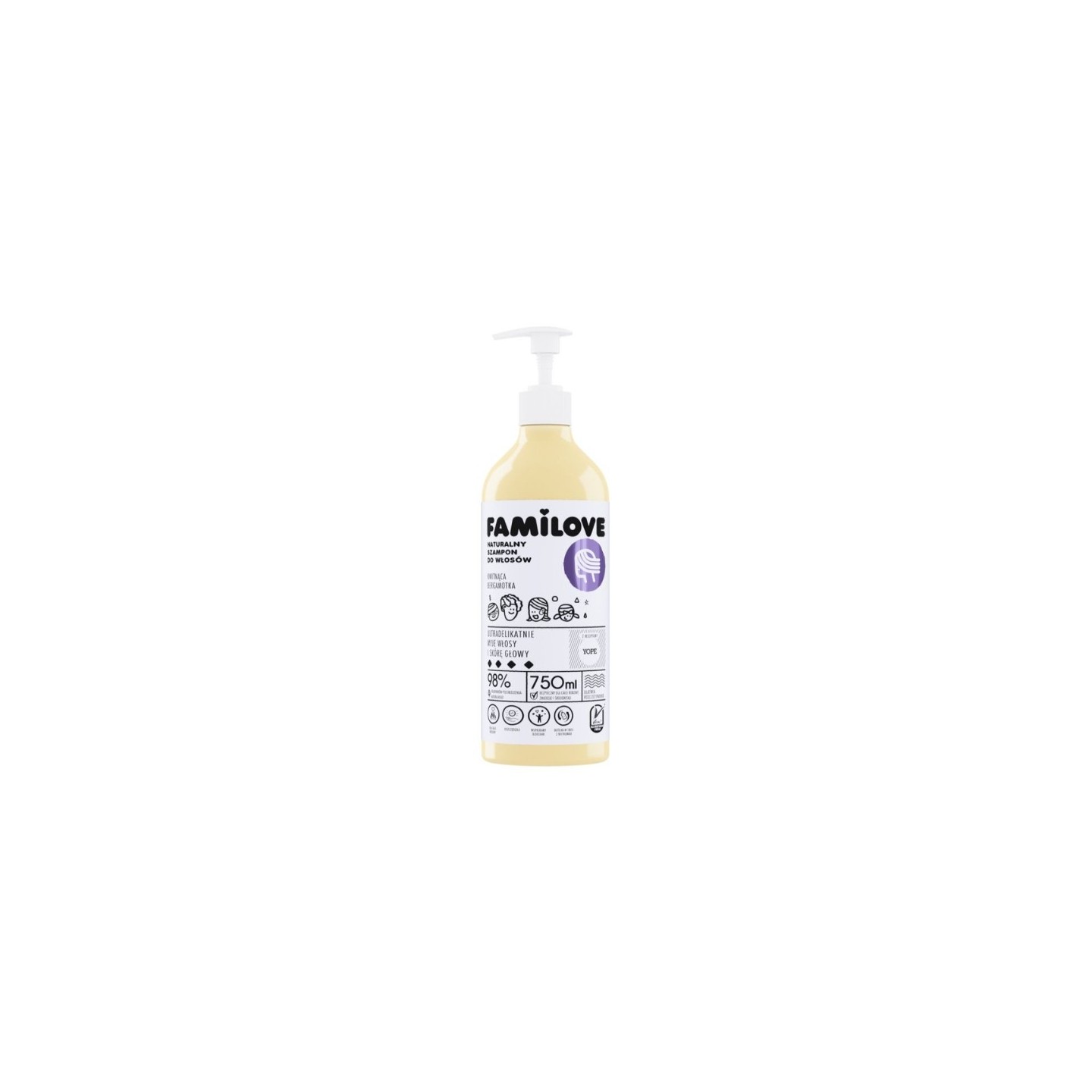 FAMILOVE shampoo is the most family-friendly shampoo that is ultra-gentle and safe for the scalp. Suitable for all hair types, it is extremely efficient and ideal for everyday use. The shampoo was created for the care of all hair types, even sensitive ones. Its balanced formula moisturizes and nourishes the hair, and natural ingredients gently cleanse the scalp and facilitate combing, leaving a feeling of freshness. Importantly, it is suitable for the whole family, both adults and children over 3 years of age. Extraordinary ingredients such as aloe juice and sweet almond oil nourish and moisturize the hair, soothing scalp irritations and strengthening its natural protective barrier. Additionally, a complex of polysaccharides from chia seeds and flax smoothes the hair, making it easier to comb. Discover hair care that combines effectiveness with gentleness.