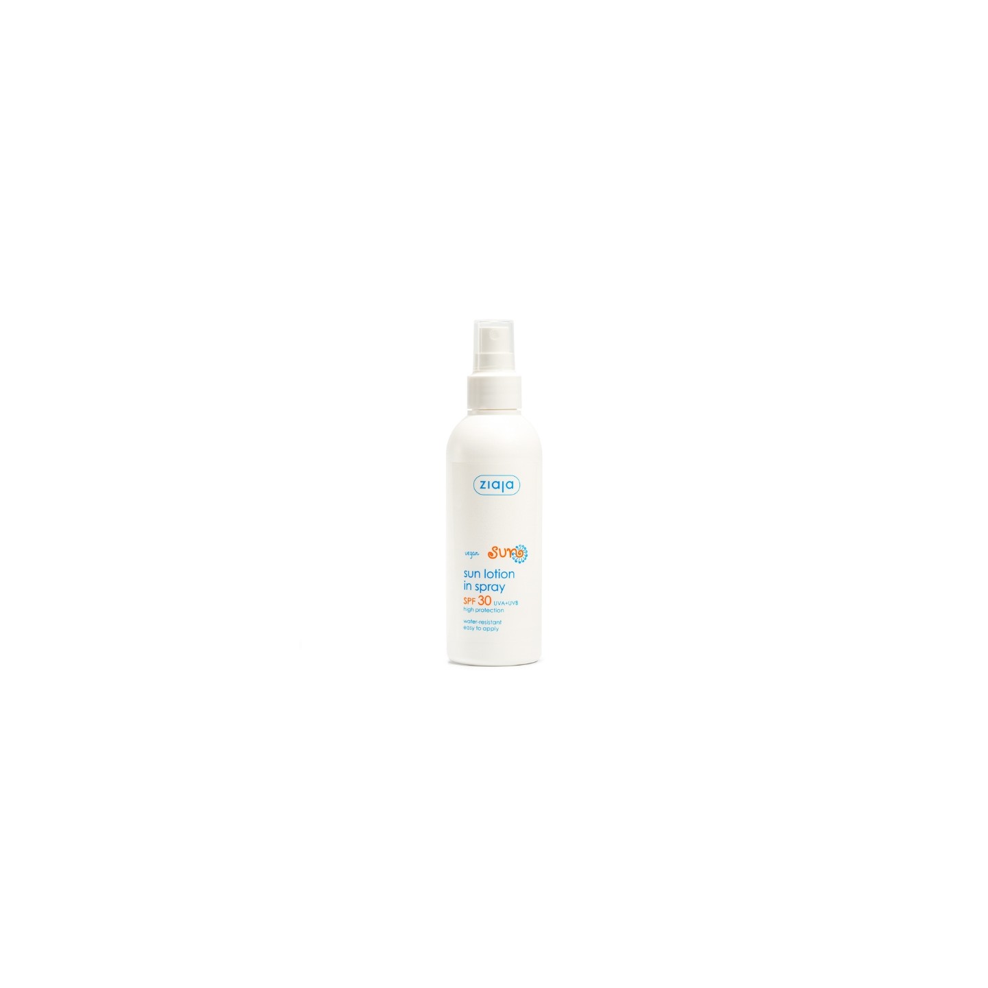 Moisturizing sunscreen lotion SPF30 in spray with UVA/UVB filters protects the skin from discoloration and irritation, si quickly and is non-sticky