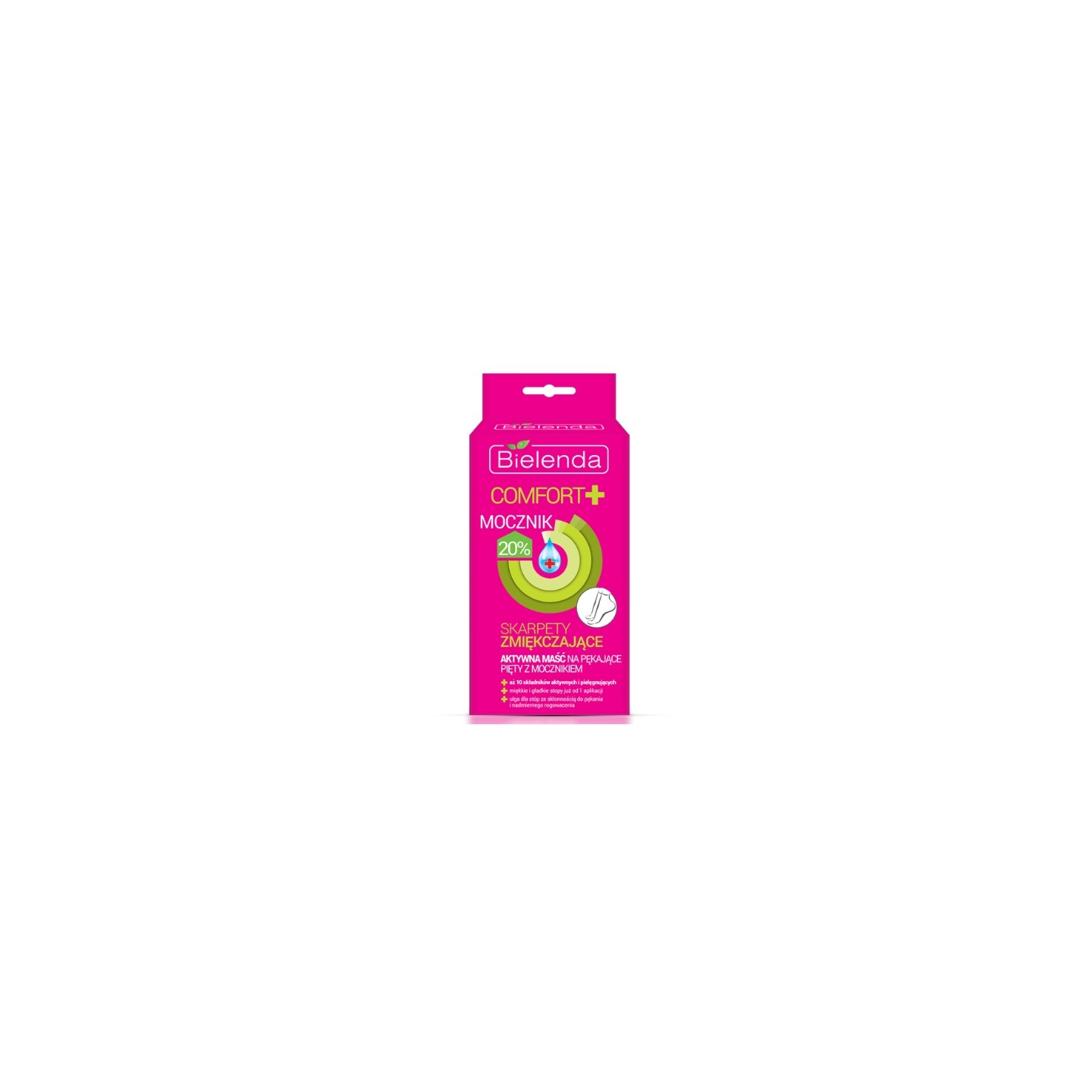 Intensywny zabieg pielęgnacyjny w formie wygodnych skarpetek, stworzony z myślą o bardzo suchej i zrogowaciałej skórze pięt. Aktywna maść z mocznikiem 20% działa jak koncentrat regenerujący, intensywnie zmiękczając zrogowaciały naskórek i wspomagając proces odbudowy skóry. Skarpetki zapewniają komfort i ochronę stóp podczas zabiegu, a dzięki wysokiej zawartości mocznika skóra staje się miękka, gładka i wyraźnie zregenerowana.