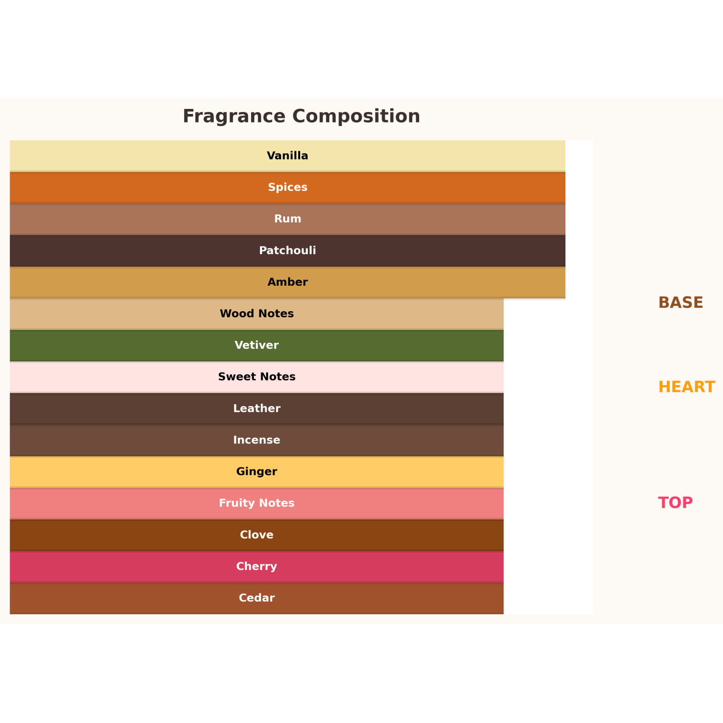✔ Nuty serca: rum, przyprawy, imbir, goździk, cedr, drzewo