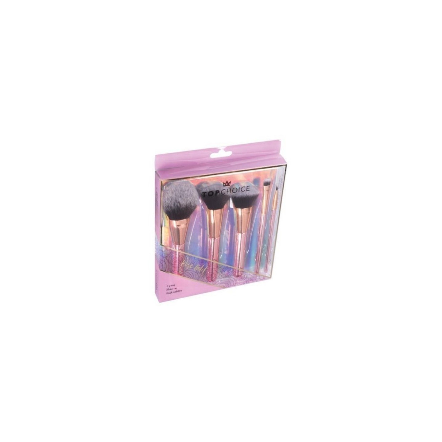 Ідеально підібраний набір базових кистей для макіяжу. Синтетичну, оксамитову на дотик двоколірну щетину пензлів легко підтримувати в чистоті та менш сприйнятливу до деформації, ніж натуральну щетину. Піднесений дизайн у glamour стилі радує наймоднішим протягом багатьох сезонів кольором золота з рожевим відтінком і металевим блиском, а також ідеальною обробкою з логотипом компанії на ручці кистей. Набір орієнтований на любительок макіяжу та жіночих гаджетів з високою естетичною та функціональною цінністю. Набір із п’яти пензликів для макіяжу включає: - Пензель для розсипчастої, мінеральної та пресованої пудри - Пензель для рум'ян, бронзера та хайлайтера - Пензлик для пудри та бронзатора - Пензлик для тіней - Пензлик для тіней