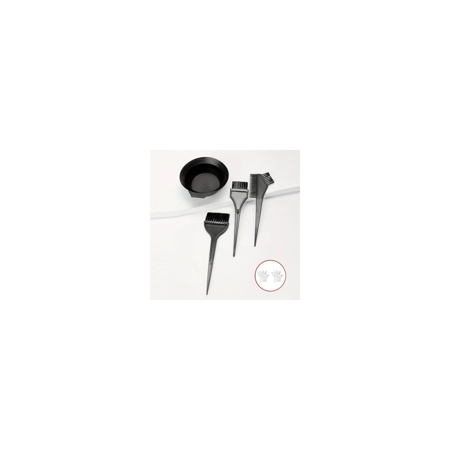 Повний набір для фарбування волосся, що включає миску, три щітки та рукавички. Ідеально підходить для точного нанесення фарби в домашніх умовах. Чаша зручна у використанні, а різні пензлики дозволяють точно нанести фарбу на всю довжину волосся. Рукавички захищають руки від забруднення. Ідеальний вибір для самостійного фарбування волосся.