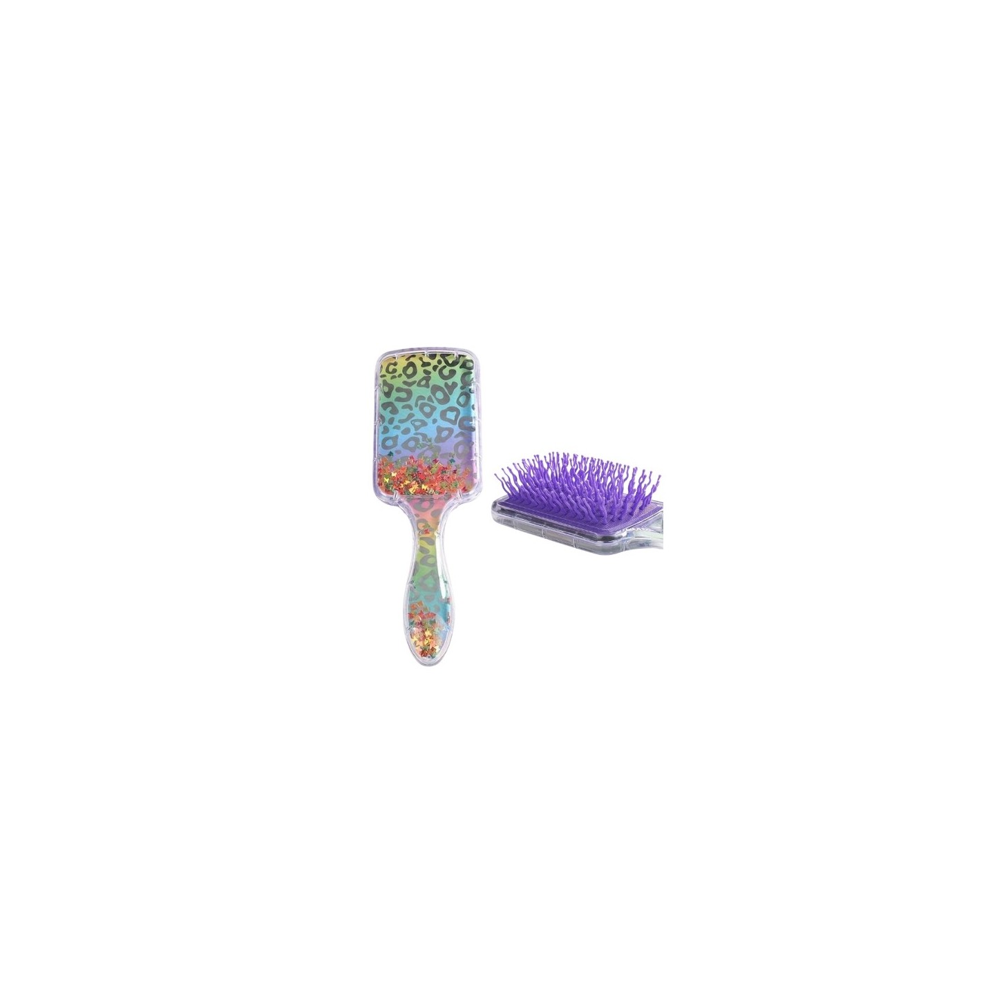 Квадратна гребінець Rainbow Panthera Violet - це елегантний і функціональний інструмент для щоденного догляду за волоссям, який поєднує в собі стильний вигляд і високу якість виготовлення. Завдяки унікальному фіолетовому дизайну з райдужним леопардовим принтом ця щітка ідеально підходить для розплутування всіх типів волосся, як сухого, так і вологого. Його квадратна форма та спеціально розроблені гнучкі зуби забезпечують м’яке, ale ефективне розчісування, мінімізуючи ризик пошкодження та ламкості волосся.