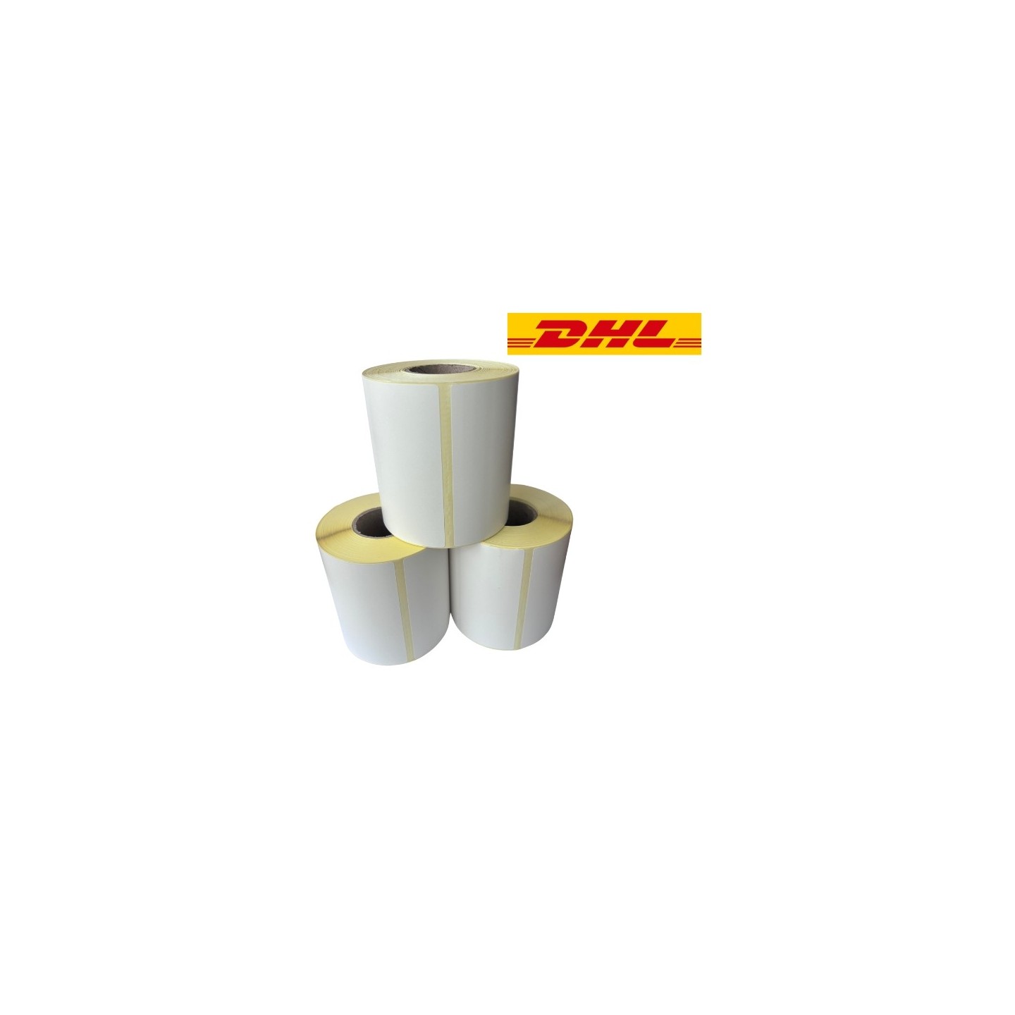 Транспортна етикетка DHL біла, 102 мм x 210 мм, 210 етикеток у рулоні, серцевина 25 мм, ECO термо, міцна упаковка з 3 шт.