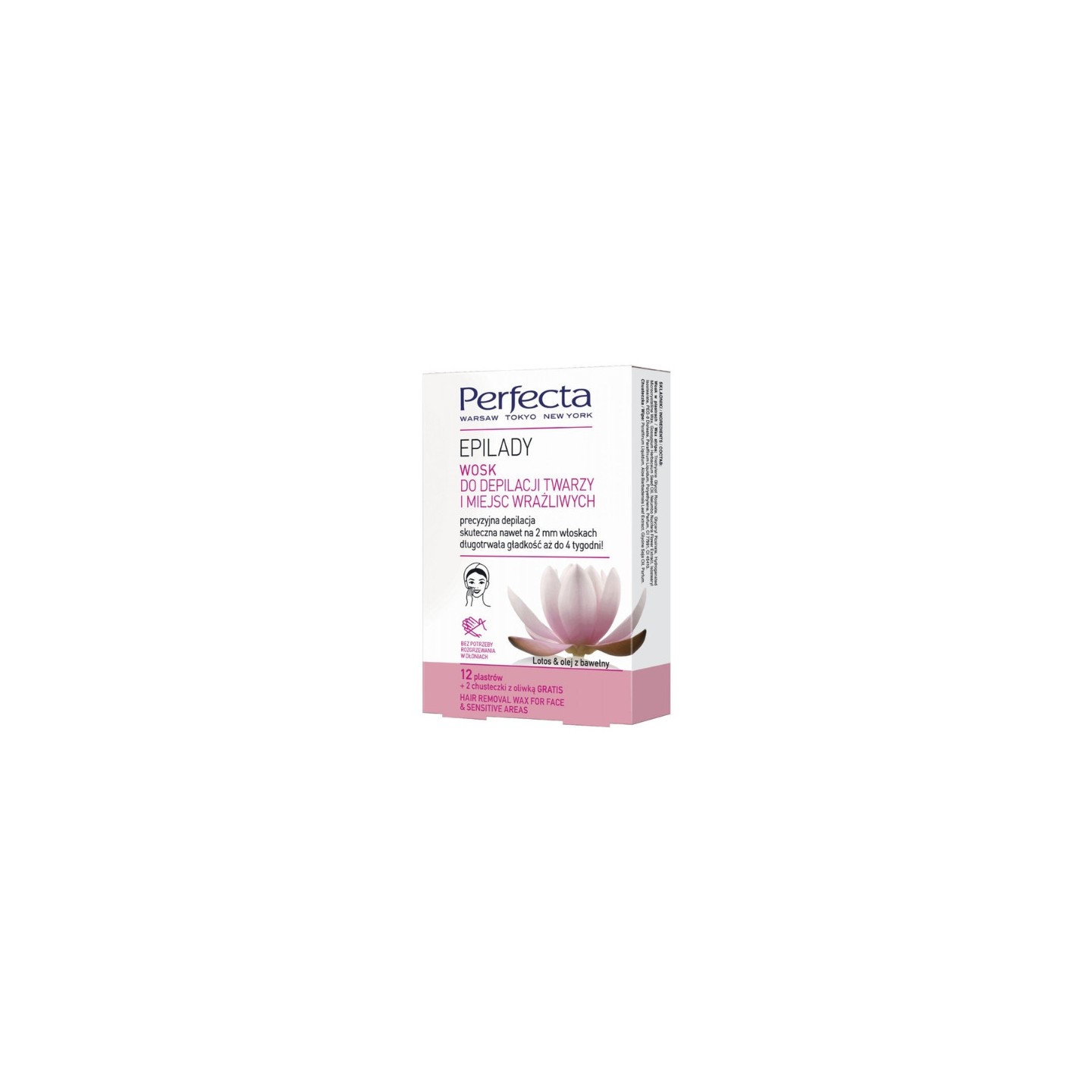 Нова формула гнучких воскових смужок забезпечує точну та ефективну депіляцію обличчя та чутливих ділянок тіла всього за 4 простих кроки. Ці патчі ідеально відшаровуються без необхідності втирання чи нагрівання, що дозволяє легко депілювати невеликі та ніжні ділянки шкіри. Їх спеціальна формула розроблена для чутливих зон, мінімізуючи ризик подразнення. Збагачені квіткою лотоса, патчі забезпечують тривалий ефект гладкості шкіри, доглядаючи за нею. Вони ефективні навіть на коротких волосках довжиною всього 2 мм. Епіляція воском послаблює волосся, що призводить до уповільнення росту. Після процедури шкіра залишається оксамитово гладкою до 4 тижнів. Просочені оливою та алое серветки, що входять до комплекту, видаляють залишки воску та заспокоюють будь-які подразнення.