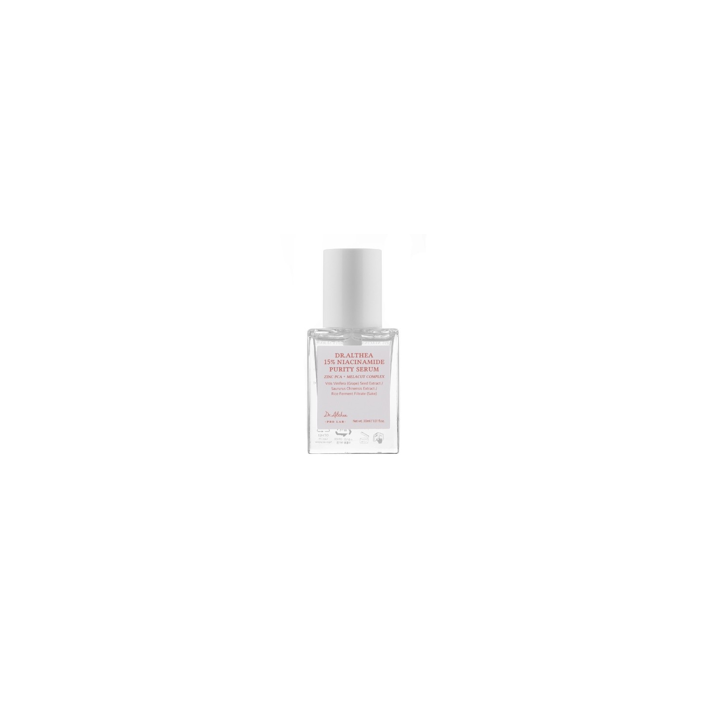 Сироватка Dr. Althea з 15% ніацинаміду освітлює плями, регулює виділення шкірного сала, звужує пори та заспокоює запалення. Ідеально підходить для жирної та проблемної шкіри.