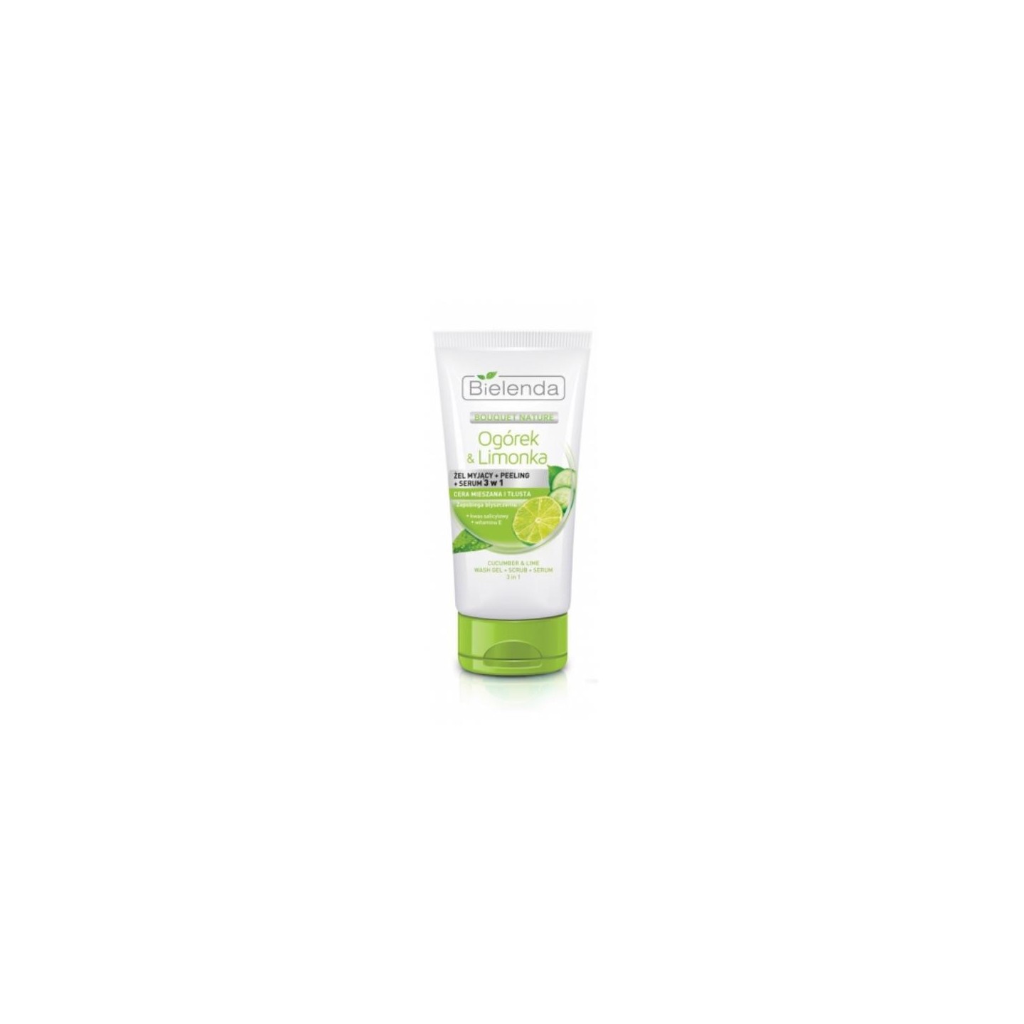 • Очищаючий гель + Peeling + Serum Bielenda Огірок і лайм 3в1 150 мл