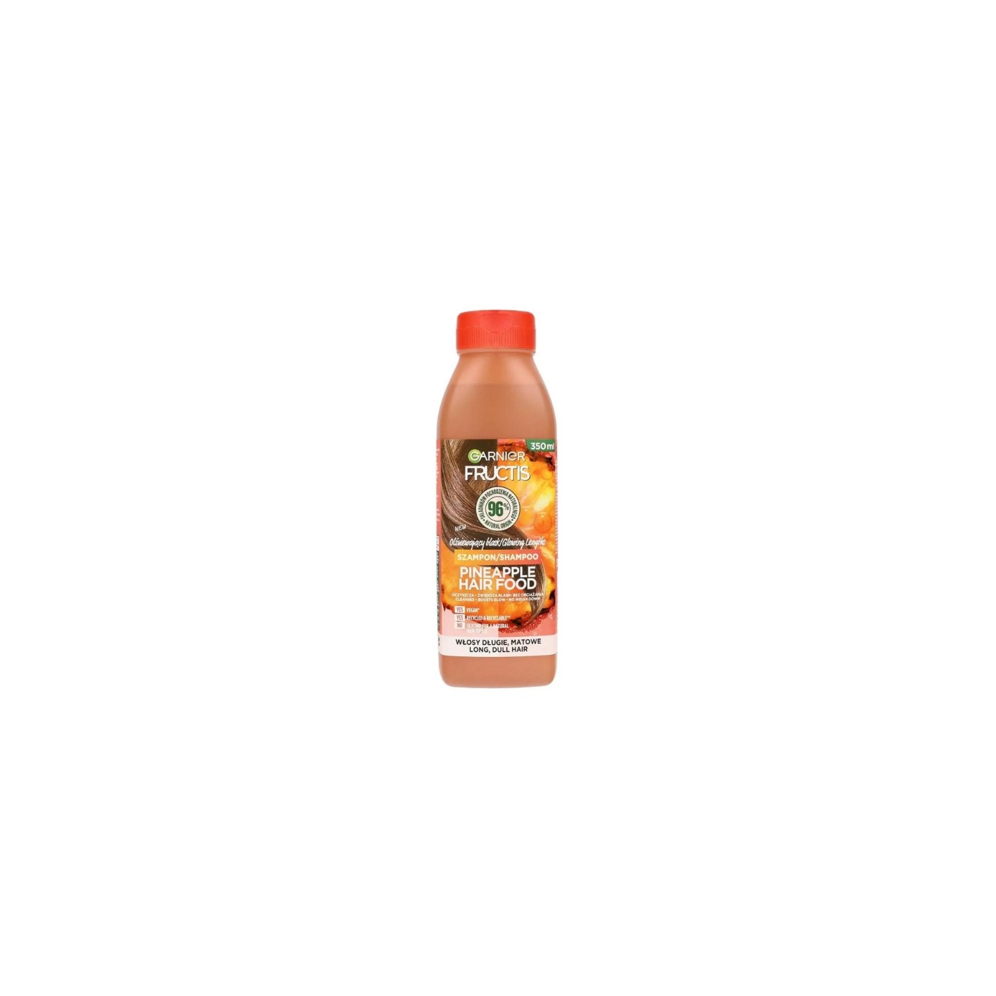 Шампунь Garnier Fructis Pineapple Hair Food є ефективним рішенням для очищення шкіри голови та миття волосся, відновлення його природної краси. Його властивості включають в себе ретельне миття волосся, очищення шкіри голови і надання ніжного аромату. Крім того, формула цього шампуню живить ослаблене волосся по всій довжині. Варто відзначити, що продукт є веганським і до його складу входить не менше 96% інгредієнтів натурального походження.