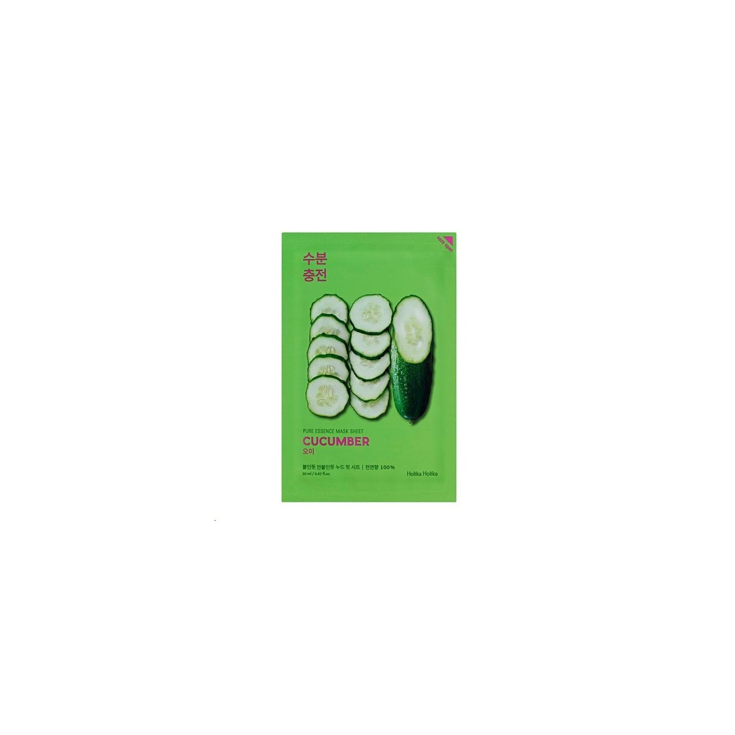 < strong > Holika Holika Pure Essence Mask Sheet-Cucumber - Маска на бавовняному листі з екстрактом огірка. Має освіжаючу, заспокійливу і заспокійливу дію.