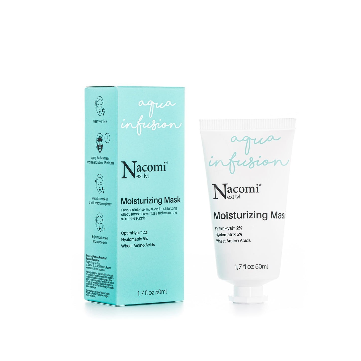 Aqua Infusion - це зволожуюча маска для обличчя, формула якої містить 4 форми гіалуронової кислоти, OptimHyalTM і амінокислоти пшениці. Ця композиція інгредієнтів глибоко проникає в шкіру і забезпечує багаторівневе зволоження . Маска Nacomi Next Level Aqua Infusion розгладжує та пом'якшує шкіру, роблячи її більш пружною та еластичною.