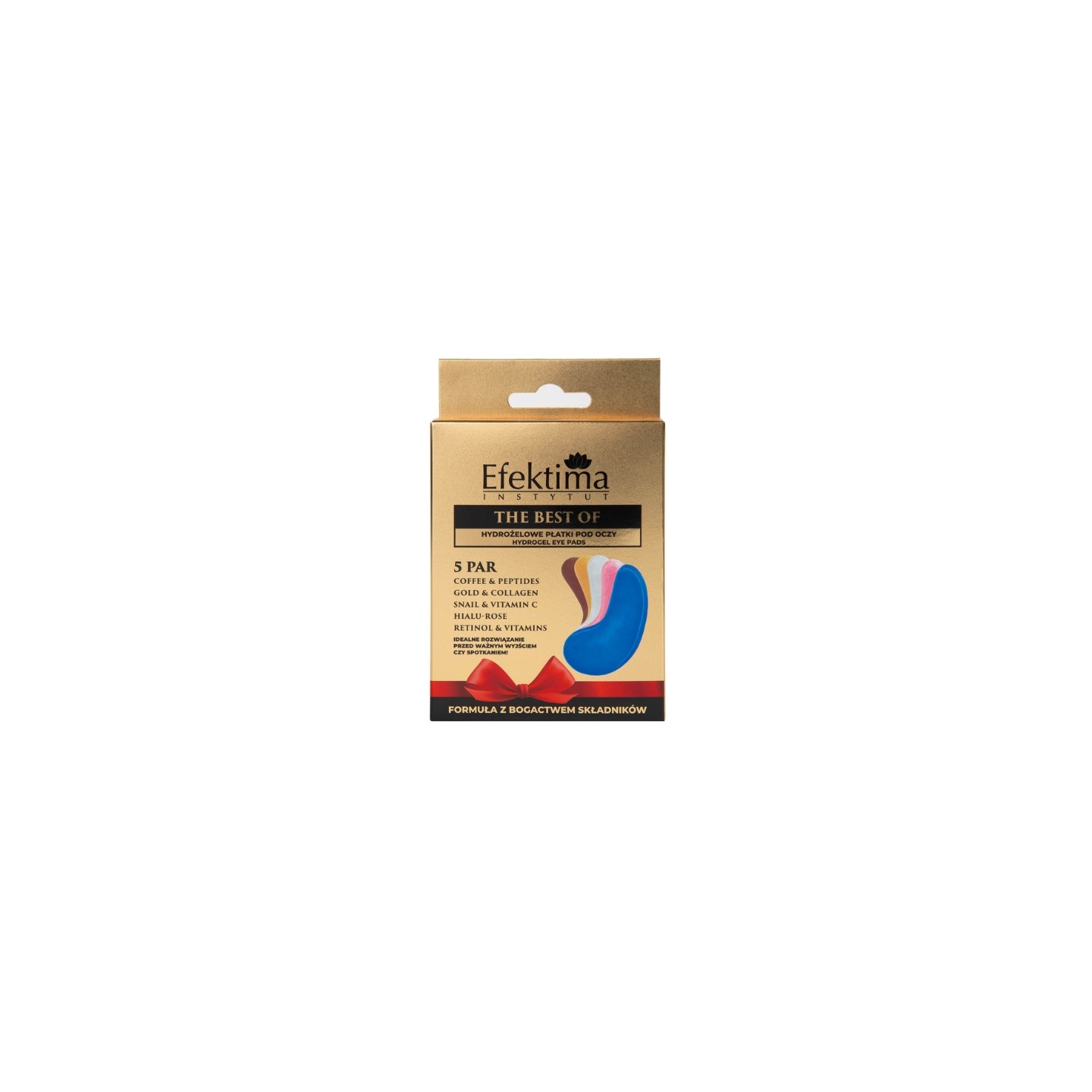 Efektima The Best Of – це набір гідрогелевих патчів для очей, розроблених для задоволення різних потреб делікатної зони навколо очей – від темних кіл та втоми, через набряки, до перших зморшок та втрати пружності. Кожна версія містить унікальну суміш активних інгредієнтів з документованою ефективністю, таких як кофеїн, пептиди, колаген, слиз равлика, вітамін С, retinol та гіалуронова кислота. Гідрогелева основа гарантує негайний охолоджувальний ефект, покращує поглинання активних інгредієнтів та зручна у використанні. Патчі ідеально прилягають до шкіри, дозволяючи вам швидко si ефектом «відпочилих очей».