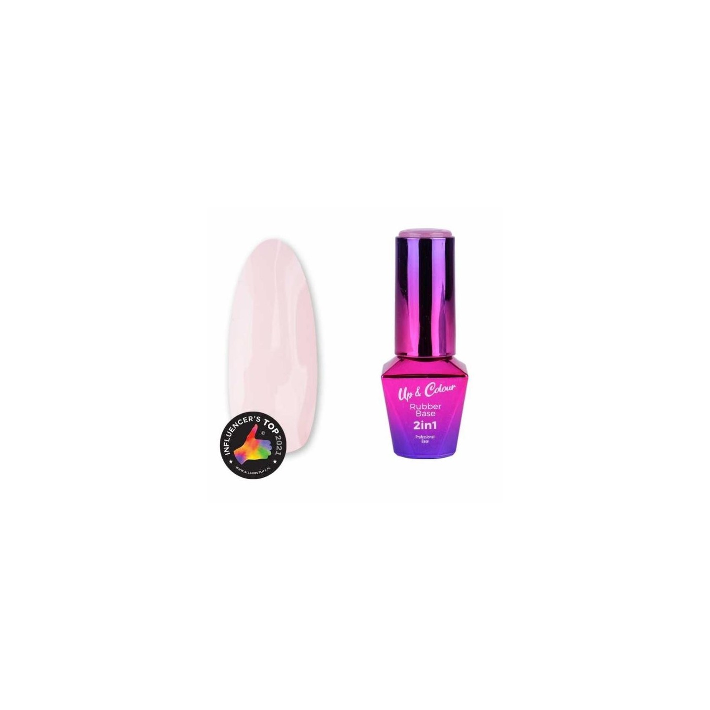 Інноваційний продукт, який поєднує в собі гумову основу з красивими, ніжними, пастельними кольорами. Після використання цього продукту ви досягнете ідеально доглянутої нігтьової пластини, завдяки чому ваші нігті зможуть рости здоровими. База 2в1 має густу самовирівнювальну консистенцію, тому ви не будете її наливати на кутикули, ale створення C-вигину також не викличе жодних проблем. Ідеально підходить для тонких, ламких і схильних до ламання нігтів. Підходить для гібриду, гелю та акрилгелю. Tender Rose — відтінок вибіленого рожевого з 60% покриттям.