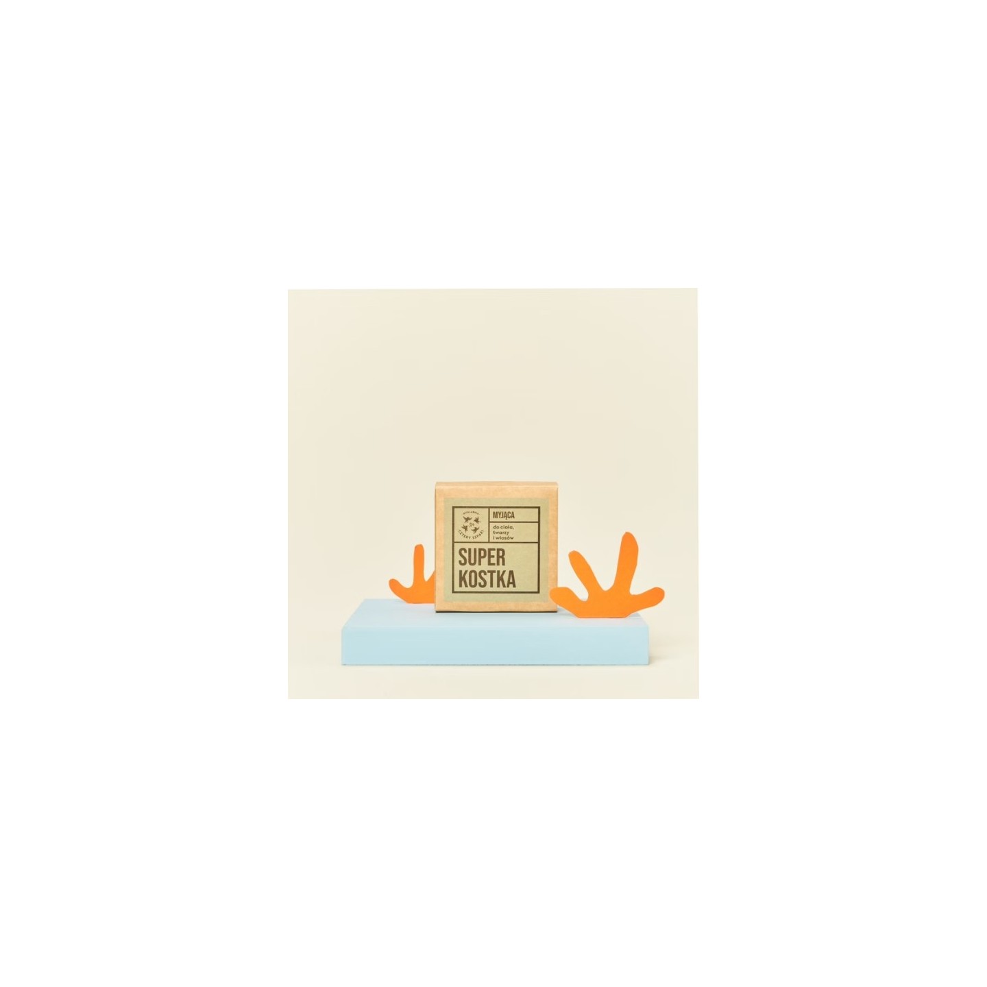 Універсальна пральна батончик SuperBone - справжня королева багатозадачності, створена для людей, які цінують мінімалізм у догляді. Зручний, ефективний і багатофункціональний, він ідеально підходить для миття ego тіла, обличчя, волосся і навіть інтимних зон. Його універсальність поєднується з м’яким, ale ефективним очищенням і турботою про навколишнє середовище, що робить його ідеальним вибором у дусі нульових відходів. Super Cube містить велику кількість природних поживних речовин, які заспокоюють і живлять шкіру, не пересушуючи її під час миття. Суміш масел какао, ши і мурумуру інтенсивно зволожує, регенерує і захищає шкіру і волосся від втрати вологи. Масляні екстракти кори берези і дуба підтримують регенеративні процеси, заспокоюють подразнення. Вміст інуліну, природного пребіотика, підтримує баланс мікробіома шкіри, забезпечуючи її здоровий вигляд. Superkostka — це повністю веганська та екологічна косметика, упакована в екологічно чисту упаковку. Його компактна форма замінює багато засобів по догляду, що не тільки економить місце у вашій косметичці, але й підтримує збалансований спосіб життя. Завдяки своїй ефективності та чудовій піні він зручний у повсякденному використанні та водночас ніжний до шкіри. Його універсальність і ефективність роблять Supercube незамінним косметичним засобом - ідеальним для людей, які шукають прості, функціональні рішення, які поєднують ефективність і турботу про планету. Це продукт, який гармонійно поєднує турботу про тіло, волосся та навколишнє середовище.