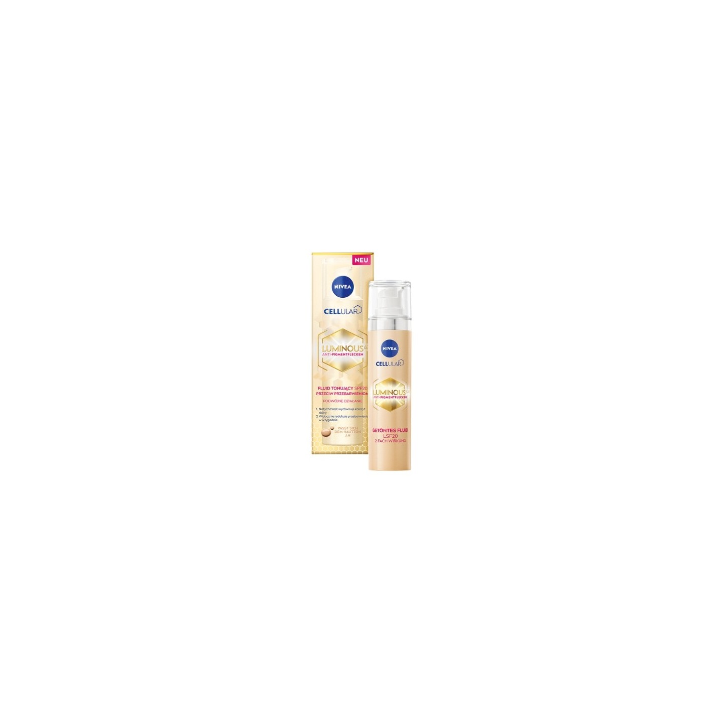Відкрийте для себе секрет красивої шкіри з NIVEA Cellular Luminous Toning Fluid. Містить гіалуронову кислоту, чудово зволожує та розгладжує шкіру, захищаючи її від шкідливого впливу UVB/UVA променів завдяки системі фільтрів SPF 20.