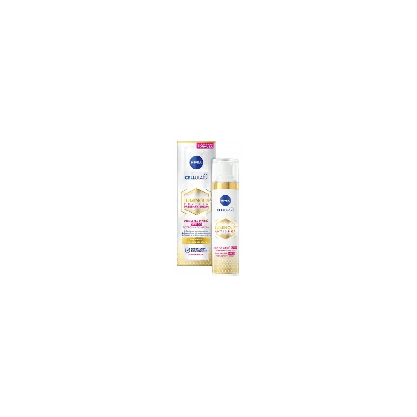 Денний крем проти пігментних плям із SPF 50 є результатом 10 років інтенсивних досліджень вчених з Дослідницького Centrum NIVEA, які протестували понад 50 000 інгредієнтів, щоб виявити новаторський і високоефективний LUMINOUS630, що діє на клітинному рівні. Денний крем освітлює наявні плями та запобігає утворенню нових плям завдяки запатентованому інгредієнту Luminous630. Крім того, крем вирівнює тон шкіри, захищає від фотостаріння та надає їй здорового сяйва. Після регулярного використання ефект помітний через 4 тижні. Продукт підходить для будь-якого кольору обличчя і типів шкіри, включаючи чутливу, і може використовуватися вагітними жінками. Переносимість шкірою підтверджена дерматологічними тестами.