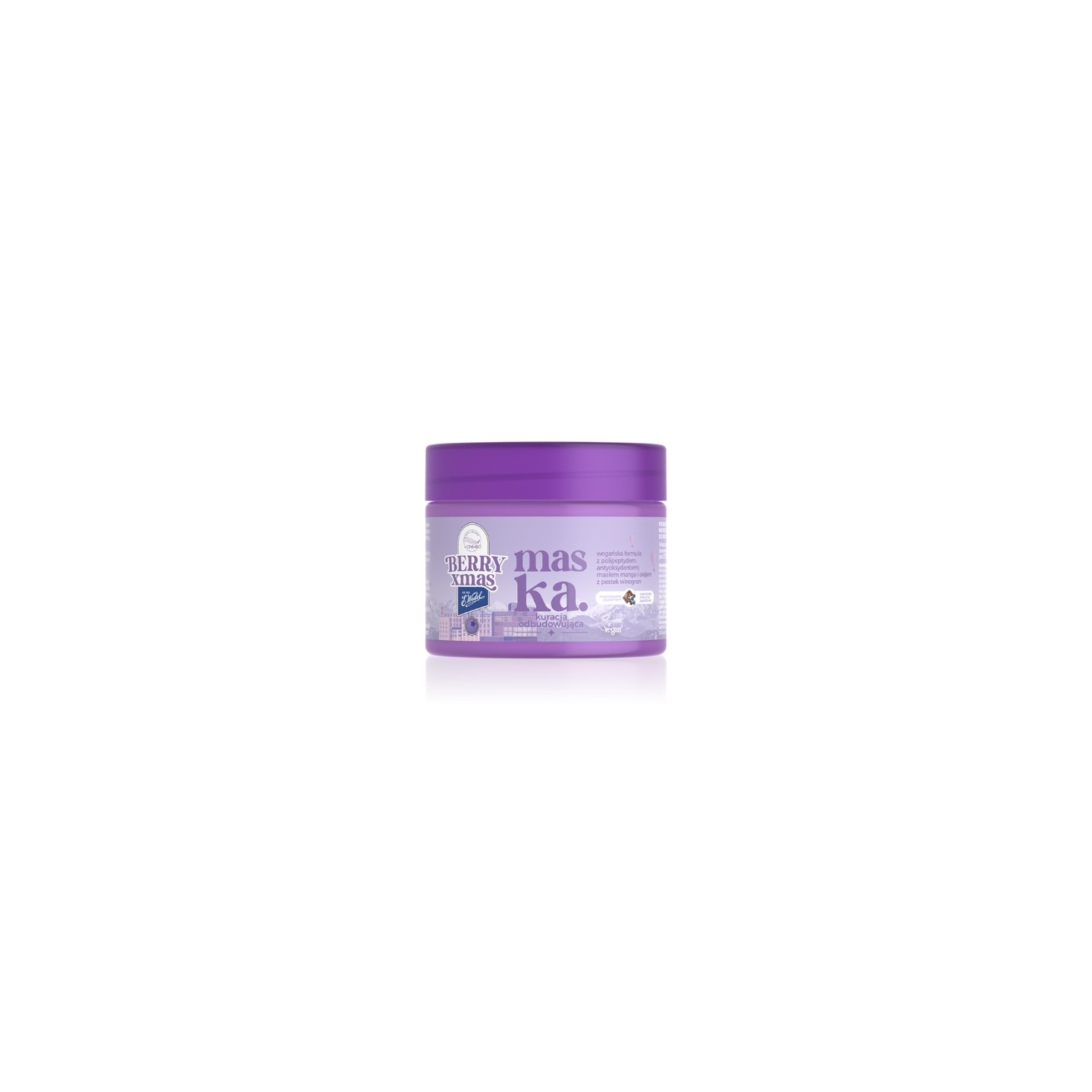 Чудова, кремова та чарівна лінійка Berry Xmas – це святкова співпраця OnlyBio та шоколадної фабрики E.Wedel. Аромат Milky Berry пахне молочним шоколадом з фруктовим натяком на ягоди, створюючи теплу, безтурботну атмосферу в зимові дні. Ламінувальна маска Hair in Balance була створена як додатковий ритуал догляду за тьмяним та жорстким волоссям. Її формула створює розгладжуючий шар на поверхні волосся, покращуючи блиск, пружність та захищаючи пасма від негативного впливу зовнішніх факторів. Волосся si м’яким, гладеньким та сяючим, не обтяжуючи його. Продукт має веганську формулу, що підходить для веганів.