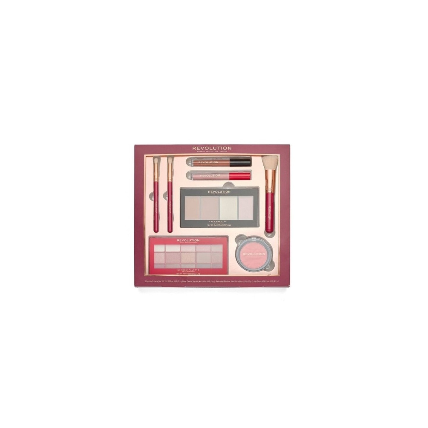 • Подарунковий набір Revolution Reloaded: палітра тіней для повік, палітра для обличчя, рум’яна, 2 блиски для губ і 3 пензлі для м