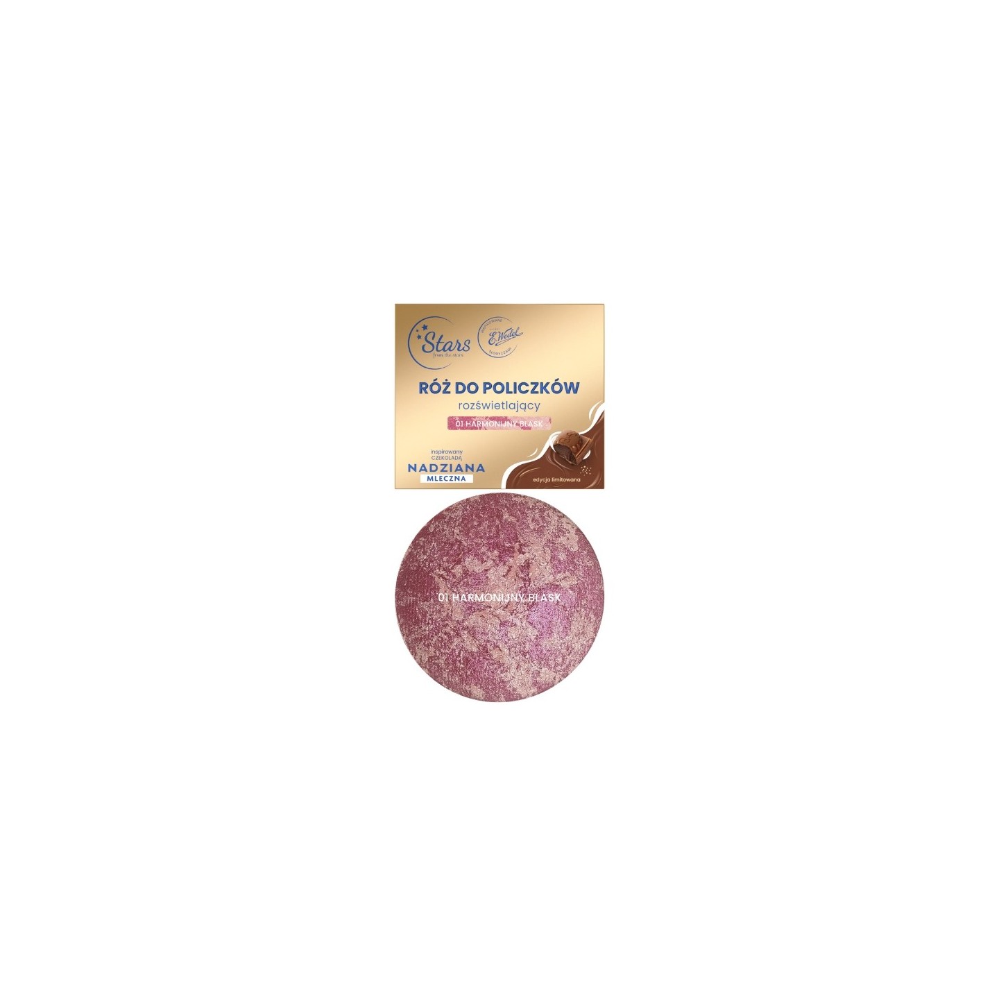 Illuminating Blush — це косметика, яка поєднує в собі красу макіяжу та надзвичайні сенсорні відчуття. Натхненний інтенсивно-шоколадною колекцією STILLED від E.Wedel, мармуровий рожевий не тільки надає щокам здоровий рум'янець, ale й делікатно освітлює їх, залишаючи на шкірі дивовижне сяйво та аромат шоколаду Wedel. Поєднуючи два відтінки в одній формі, рожевий дозволяє ідеально підібрати колір до вашого кольору обличчя або настрою. Його запечена формула гарантує ідеальне змішування, гарне завершення та виняткову ефективність. Засіб підходить як для тонкого підсвічування щік, так і для більш виразного ефекту - в залежності від інтенсивності нанесення.