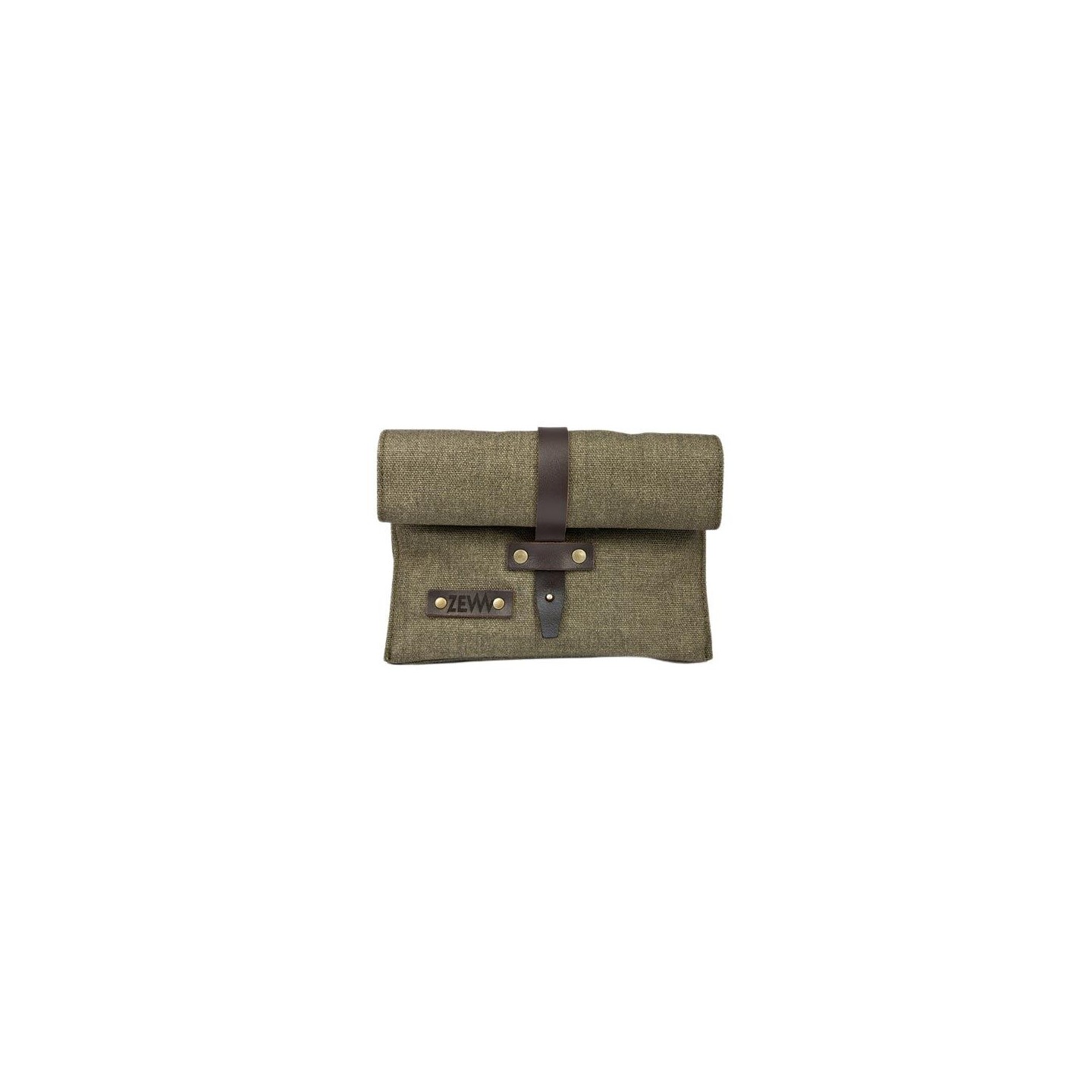 Косметичка кольору хакі з просоченого лляного матеріалу, застібається на шкіряний ремінець, містка, водонепроникна і міцна. Його можна використовувати як у домашній ванній, у спортзалі, так і під час тривалих подорожей. Розміри: довжина 22 см, ширина 8 см, висота 16 см (в розкладеному вигляді 5 см)