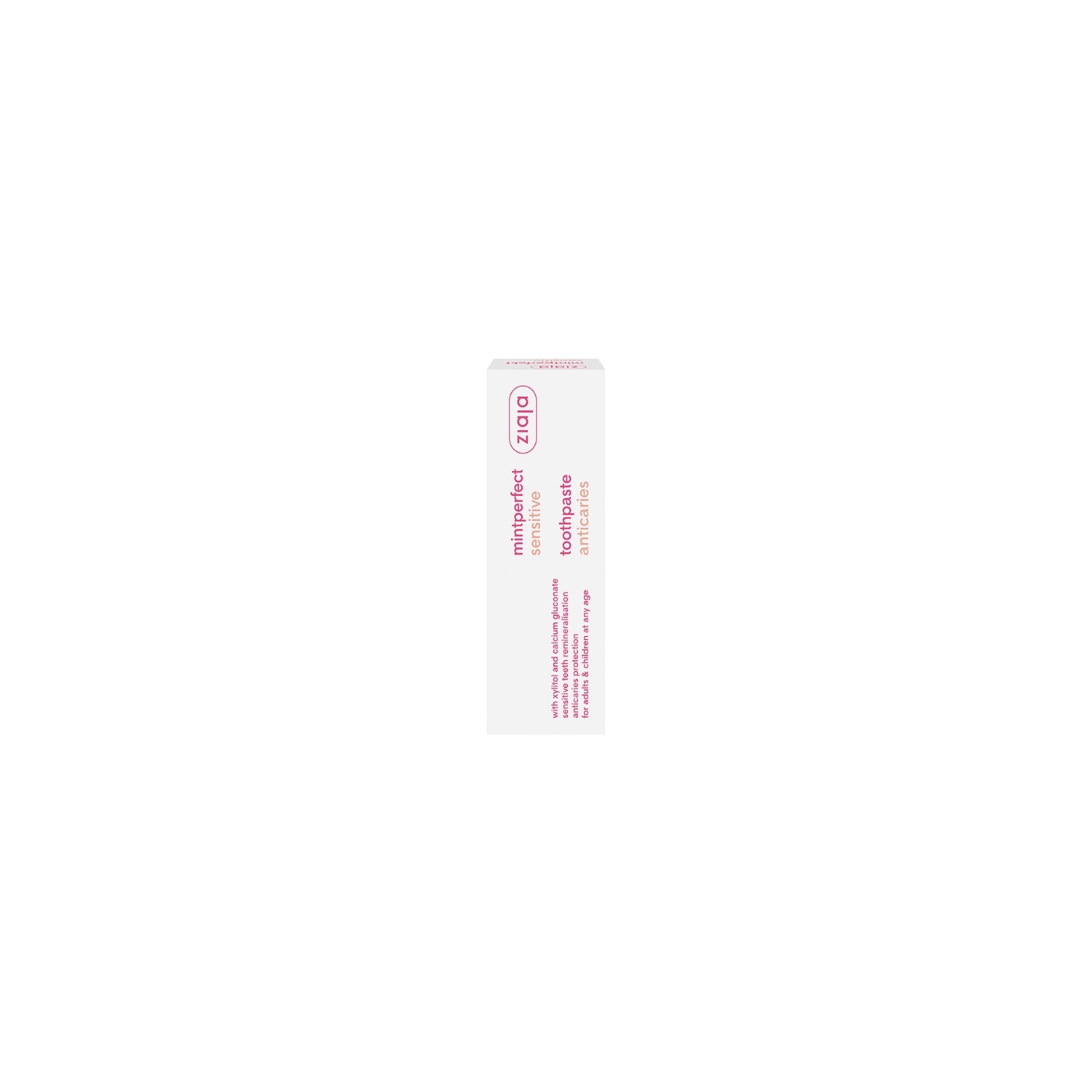 Ziaja Mintperfect Sensitiv anti-caries – це зубна паста щоденного використання без фтору, яка зміцнює емаль, захищає від карієсу та делікатно освіжає подих.